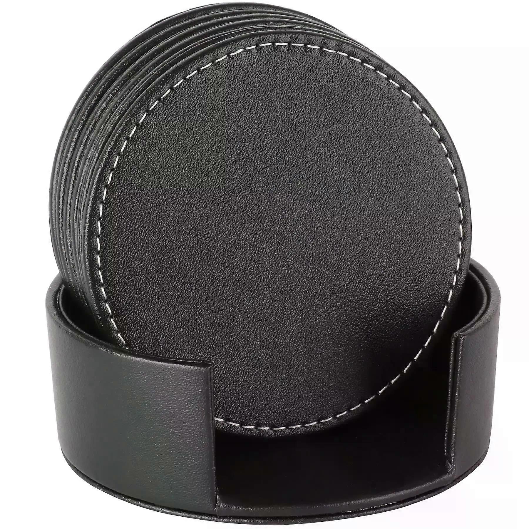 Leather Coasters for Drinks 6 Pack Handmade Drink Coasters Set with Holder for Tabletop Protection Luxurious Home Dcor Name: Coaster Color: round black stitching, round brown stitching Material: leather Size: 10cm Weight: 220g ELEGANT MODERN DESIGN - Set includes 6 black leather coasters, 4 inches in diameter, each coaster comes with a stylish stand. These leather coasters are crafted from double-layered PU leather to ensure both aesthetics and functional durability. The edges are carefully sewn with white thread, adding a touch of sophistication and luxury to any home or kitchen setting, making them the perfect blend of form and function. PREMIUM MATERIAL - These leather drink coasters are made of high-quality PU leather, which is not only eco-friendly and odorless, but also lightweight and very durable. The material is non-slip and provides a secure base for your drinks. Additionally, their water-resistant properties ensure longevity, making these coasters a practical and stylish option for everyday use, enhancing the overall dining experience. EASY MAINTENANCE - The waterproof surface of these leather coasters is designed for convenience, making cleaning effortless. Simply rinse them under running water to remove any spills or stains, then wipe dry with a cloth and they are ready to be reused immediately. This simple maintenance ensures that the coasters remain in pristine condition, providing functionality and elegance to your home. MULTI-PURPOSE PROTECTION - These leather coasters are perfect for protecting your furniture from water marks, stains and damage caused by all kinds of drinks. They fit all types of cups, glasses and mugs and are ideal for hot and cold drinks. Whether you are serving coffee, tea, wine, beer, or any other beverage, these coasters provide a versatile solution for any setting, from casual to formal. ELEGANT MODERN DESIGN - Set includes 6 black leather coasters, 4 inches in diameter, each coaster comes with a stylish stand. These leather coasters are crafted from double-layered PU leather to ensure both aesthetics and functional durability. The edges are carefully sewn with white thread, adding a touch of sophistication and luxury to any home or kitchen setting, making them the perfect blend of form and function. PREMIUM MATERIAL - These leather drink coasters are made of high-quality PU leather, which is not only eco-friendly and odorless, but also lightweight and very durable. The material is non-slip and provides a secure base for your drinks. Additionally, their water-resistant properties ensure longevity, making these coasters a practical and stylish option for everyday use, enhancing the overall dining experience. EASY MAINTENANCE - The waterproof surface of these leather coasters is designed for convenience, making cleaning effortless. Simply rinse them under running water to remove any spills or stains, then wipe dry with a cloth and they are ready to be reused immediately. This simple maintenance ensures that the coasters remain in pristine condition, providing functionality and elegance to your home. MULTI-PURPOSE PROTECTION - These leather coasters are perfect for protecting your furniture from water marks, stains and damage caused by all kinds of drinks. They fit all types of cups, glasses and mugs and are ideal for hot and cold drinks. Whether you are serving coffee, tea, wine, beer, or any other beverage, these coasters provide a versatile solution for any setting, from casual to formal. _x000D_ _x000D_ _x000D_ _x000D_