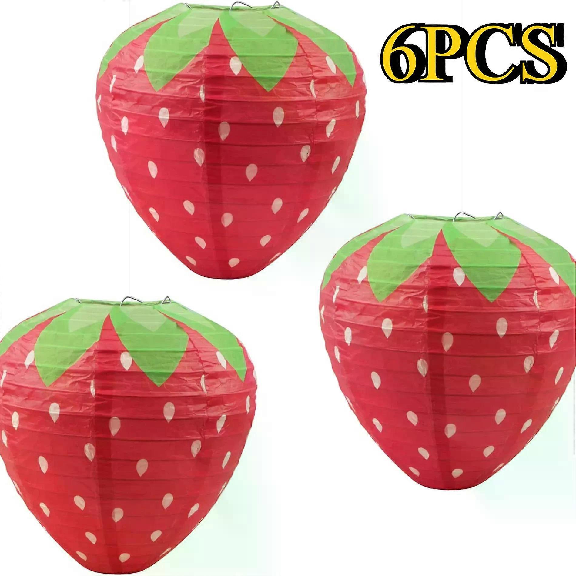 6PCS Strawberry paper lanterns DIY fruit themed birthday party lanterns foldable holiday props strawberry lights