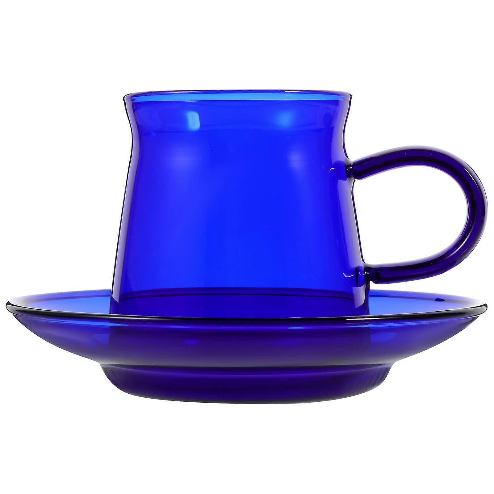 Guangmc Blue Glass Coffee Cup with Tray - 300ml