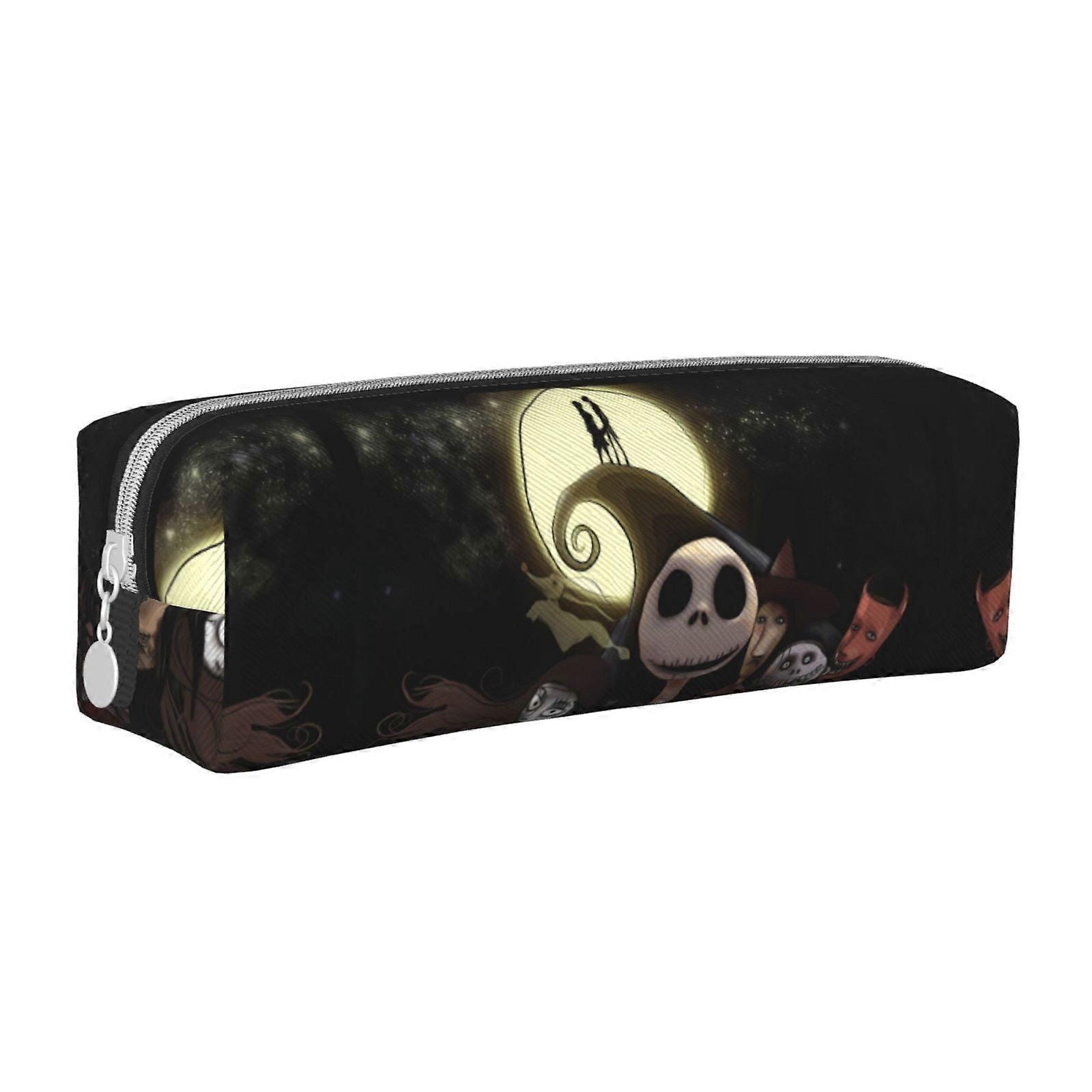Nightmare Before Christmas Pen Pouch, Black Leather Pencil Case with Zipper, Compatible with Fountain Pens, Markers, Makeup, Coins, Gift for Adults,