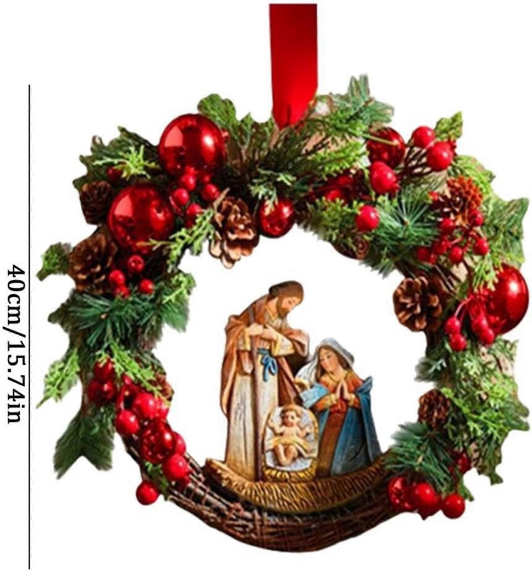 40cm Christmas Wreaths for Front Door, Holiday Decorations Garland for Indoor Outdoor Home Party, with Bow, Compatible with 16 inch