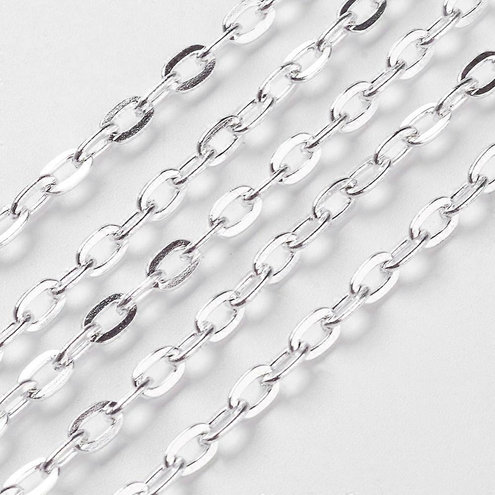 5m Iron Cable Chains Unwelded with Spool Flat Oval Cadmium Free & Lead Free Silver 5.9x3.9x1mm about 16.4 Feet(5m)/roll