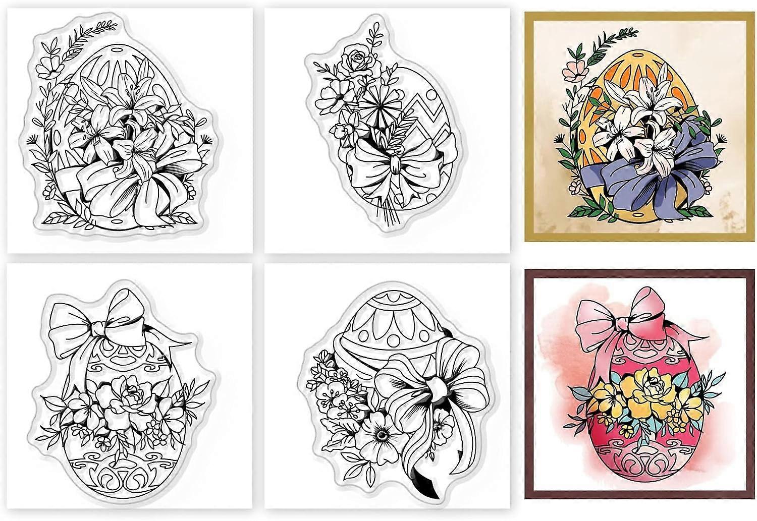 4Pcs Mini Easter Eggs Clear Stamps, Happy Easter Floral Eggs with Flower & Bow, 2.2x2.2inch, for DIY Scrapbooking, Photo Album, Decorative Cards