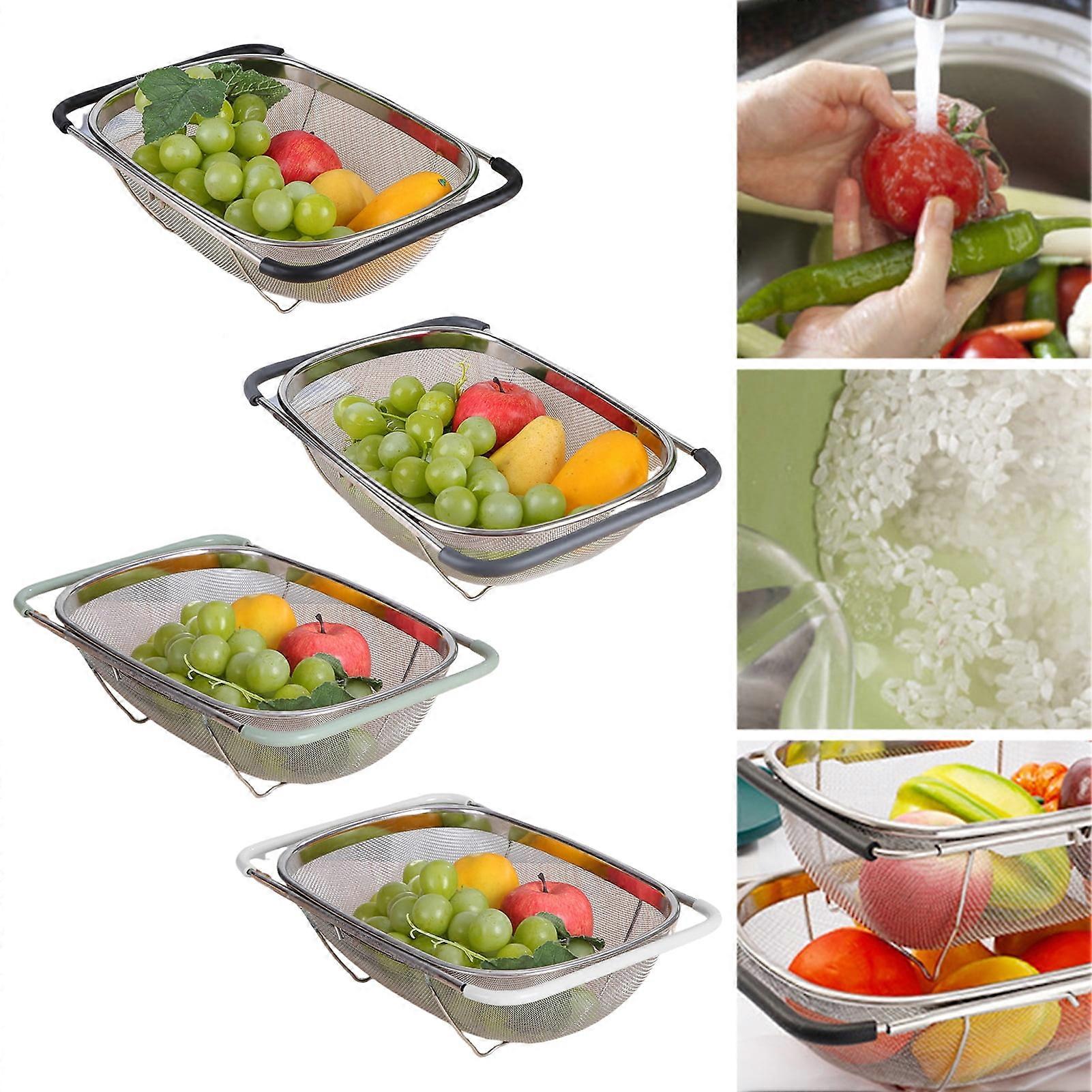 SUSUchens Stainless Steel Drain Basket Sink Colander, Strong Telescopic Fruit Veggie Strainer with Expandable Handles, Black, Size L