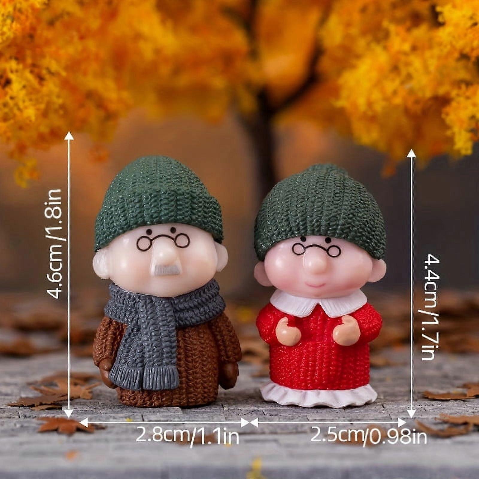 Cute 2pcs Festive Cartoon Grandparents Figurines, Winter Cozy Collection, Indoor Decor, No Electricity Required, compatible with various room types