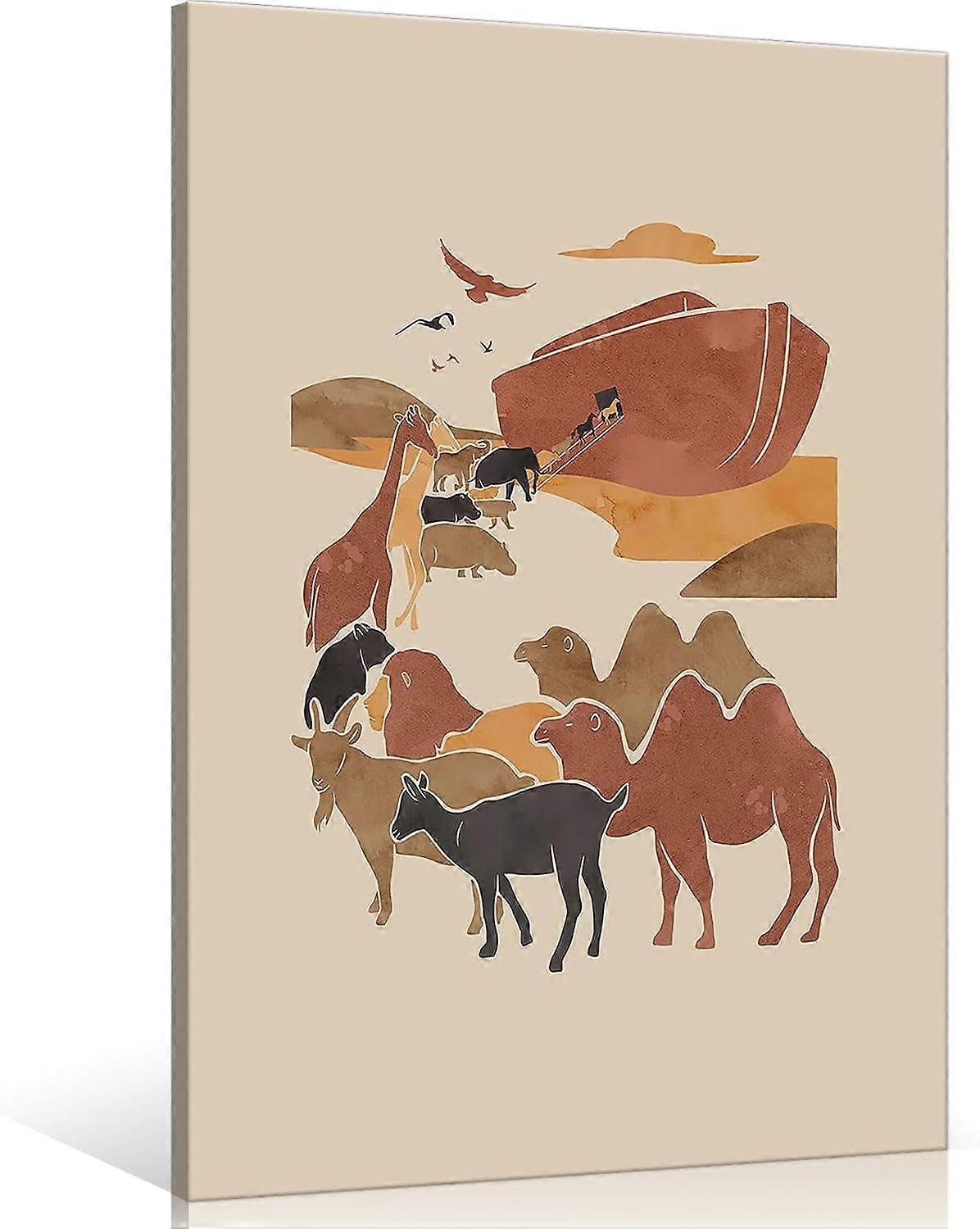Abstract Jesus Canvas Wall Art, Jesus and Peter Walk on Water Minimalist Poster, Unframed 20x16 Inch