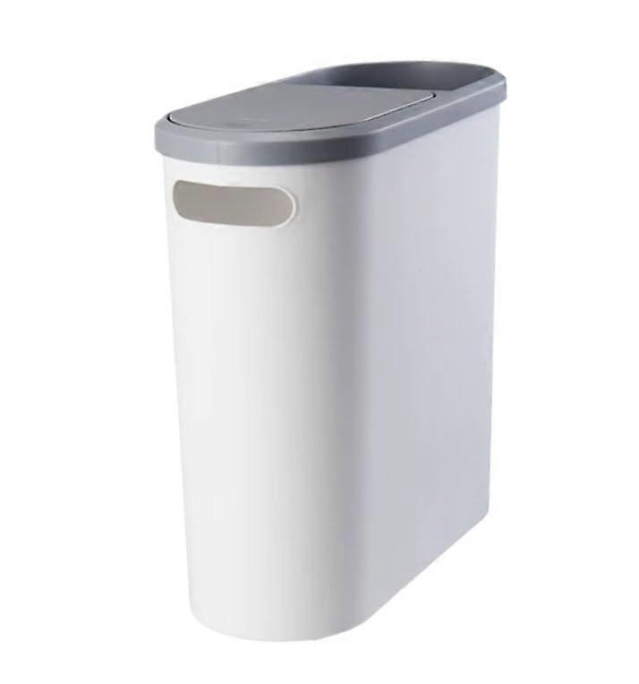 Trash Can With Lid UltraThin Narrow Plastic White Wastebasket, Bathroom PushOn Bin