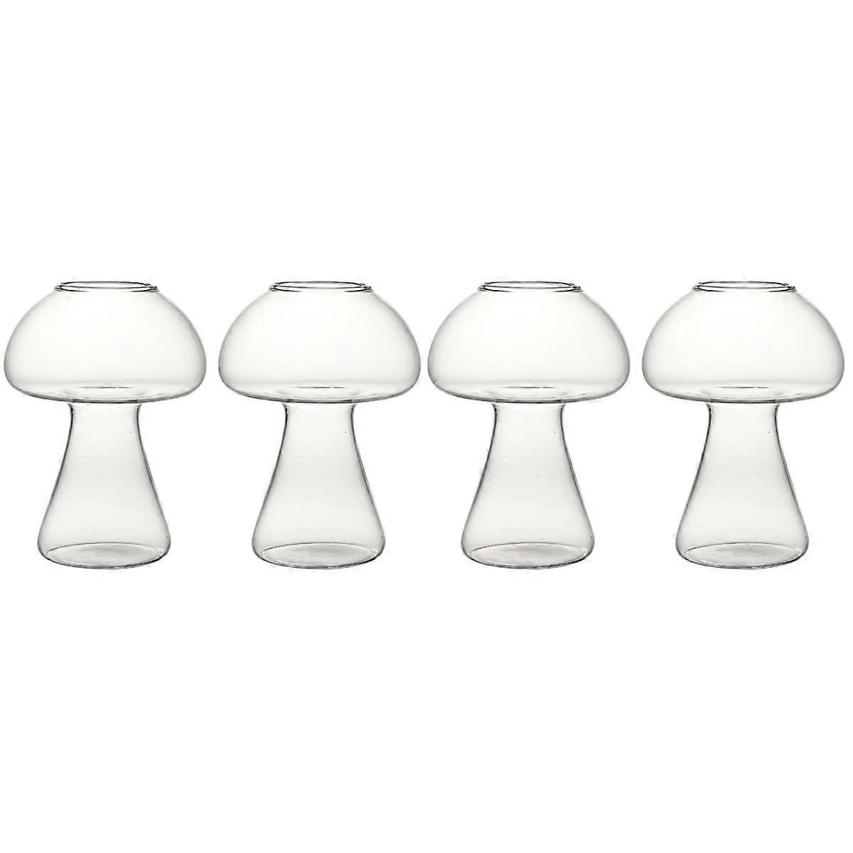 4PCS Creative Mushroom Cocktail Glasses Clear Glass, Mushroom Design, 13x8.5cm, Set of 4 Martini Glasses for Home Bar