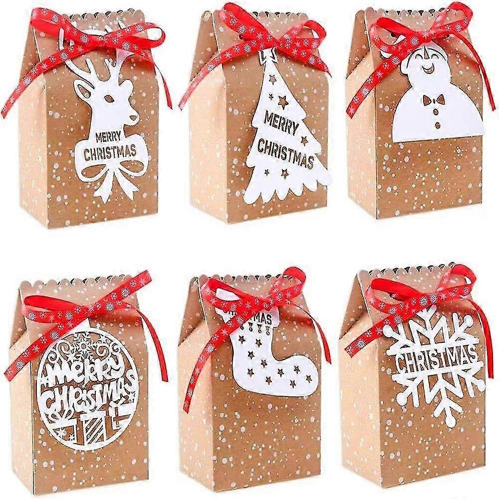 Set of 24 Kraft Paper Christmas Candy Boxes with Gift Tags and Ribbon