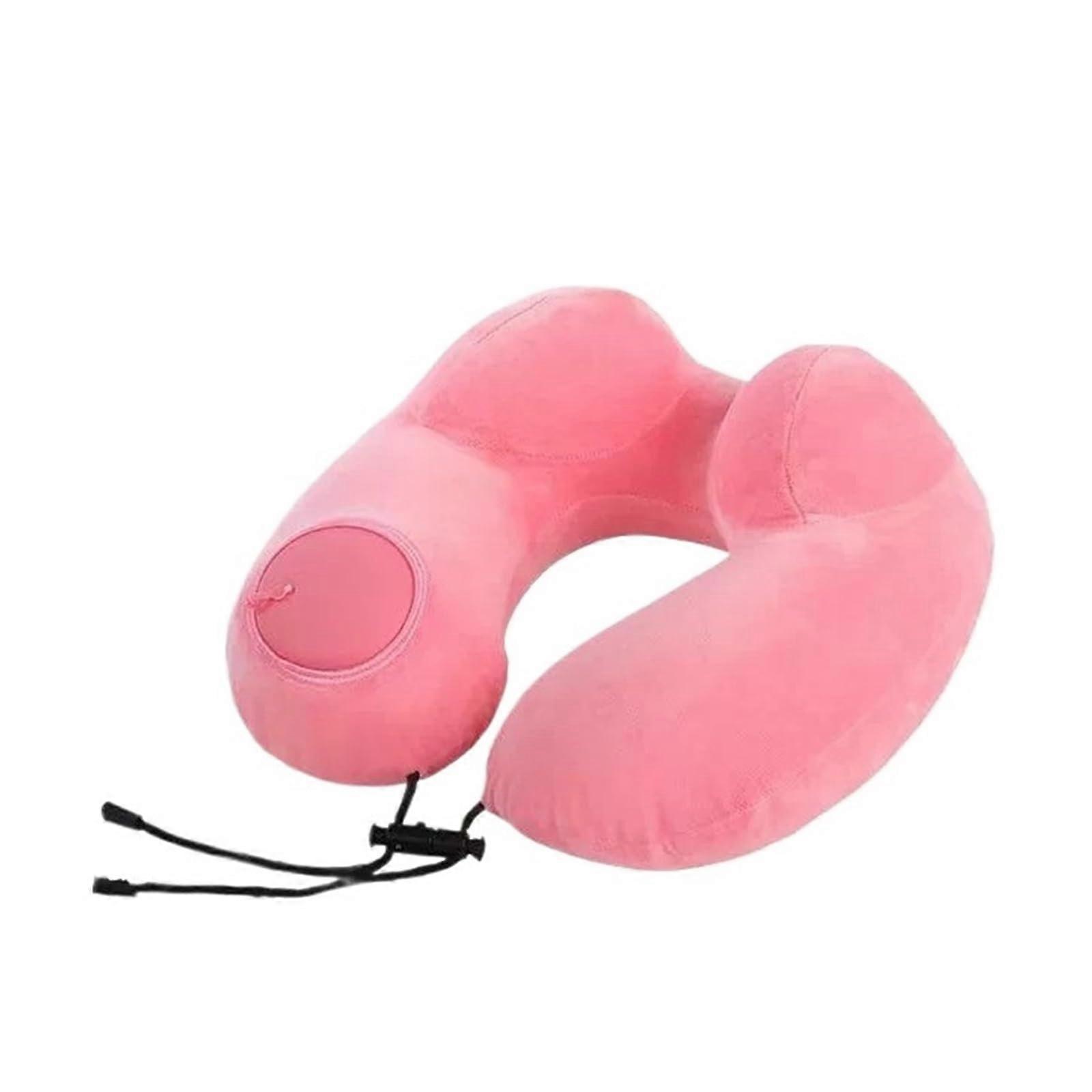 UShaped Comfortable SelfInflating Air Pillow Neck Support Travel Pillow Pink Inflatable Sleeping Pillow