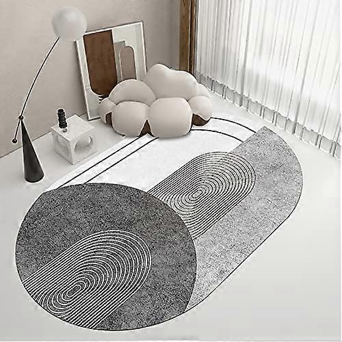 Oval Hallway Rugs Non Slip Kitchen Runner Mat 60 X 90 Cm Gray White Modern Geometric Stripes Low Pile Washable