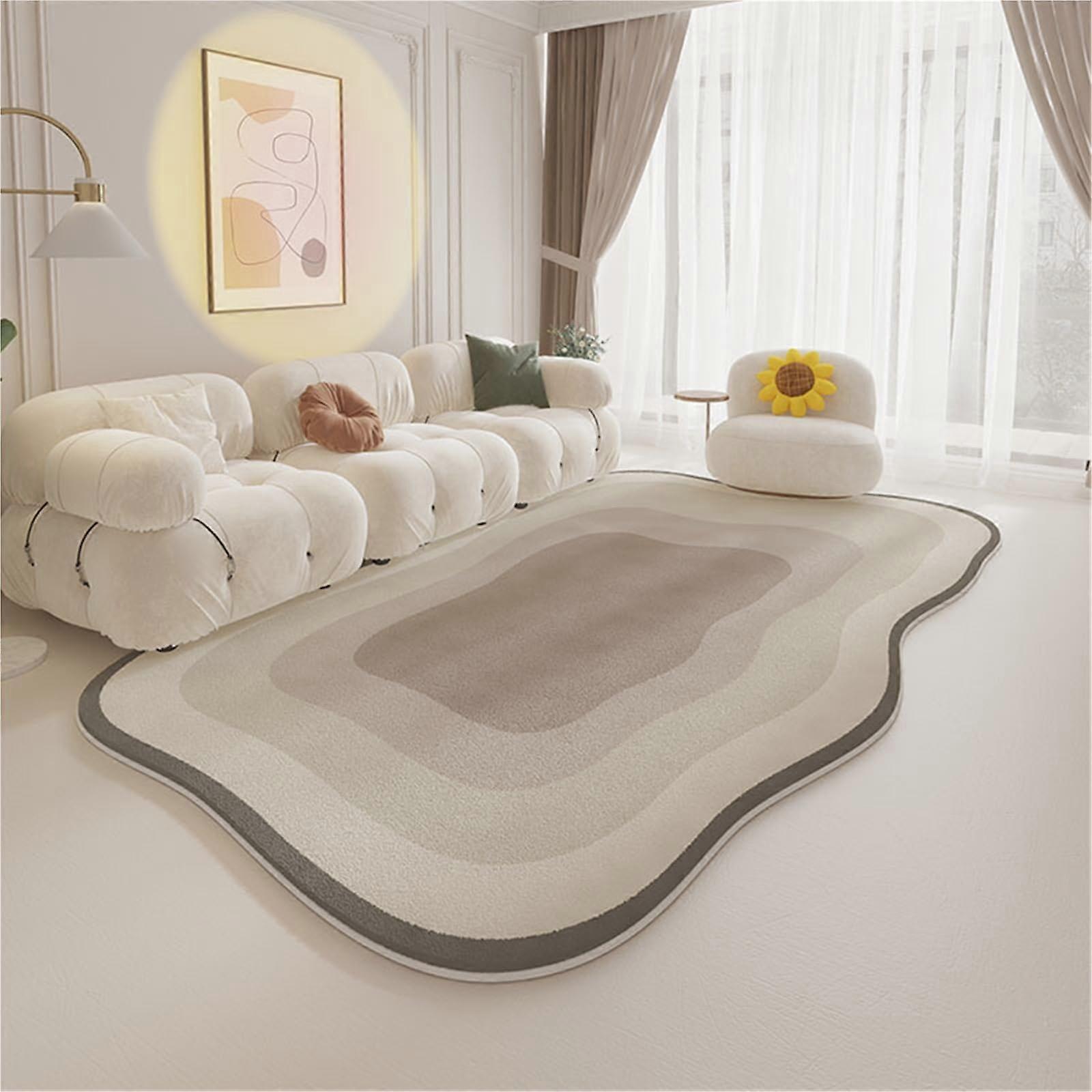 Beige Area Rug Irregular Oval Modern Abstract Cashmere, For Living Room, AntiSlip Durable Washable, Grey 140x200cm