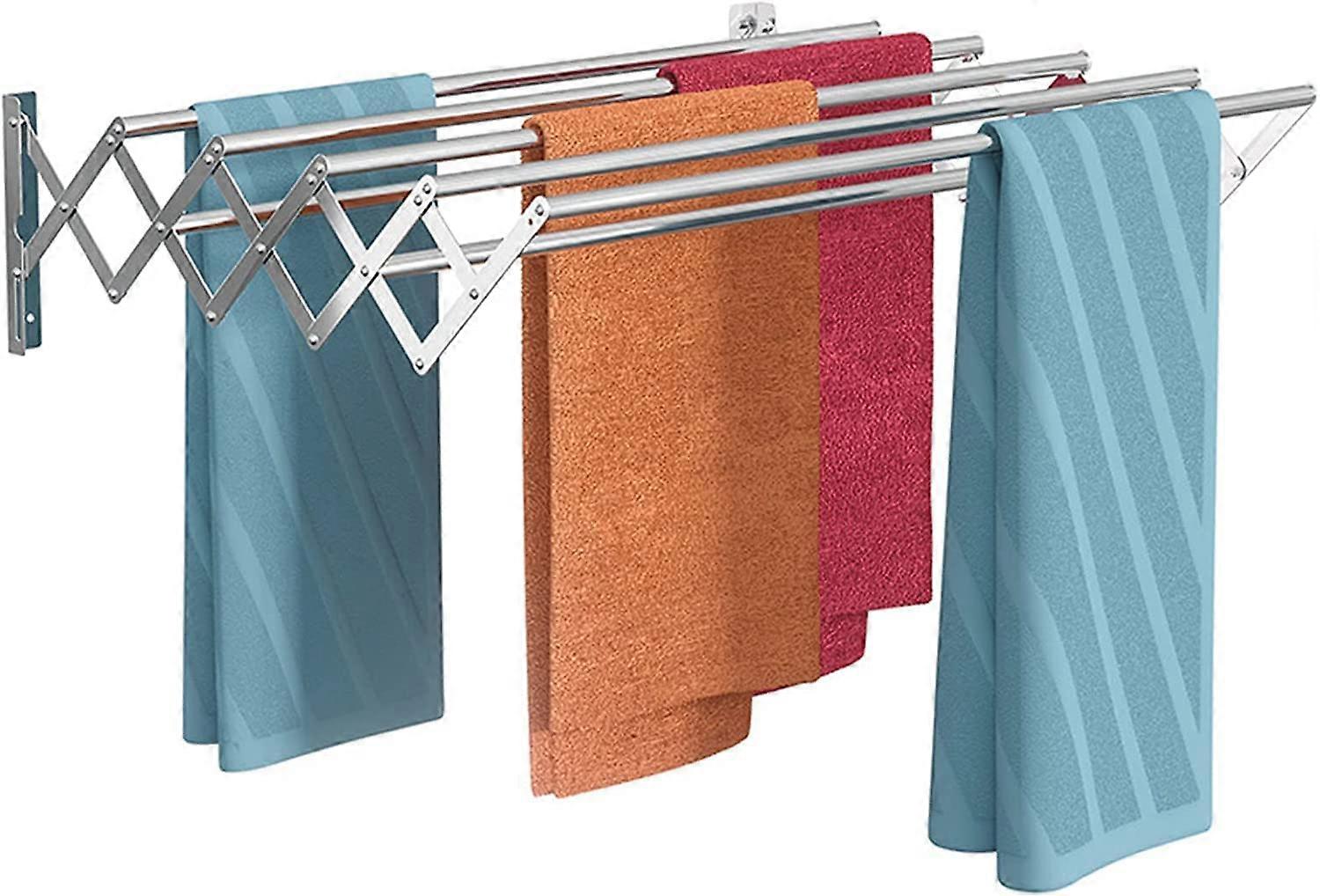 Wall Mount Clothes Drying Rack Rustproof Stainless Steel 7Bar Accordion Retractable For Laundry Room And Bathroom