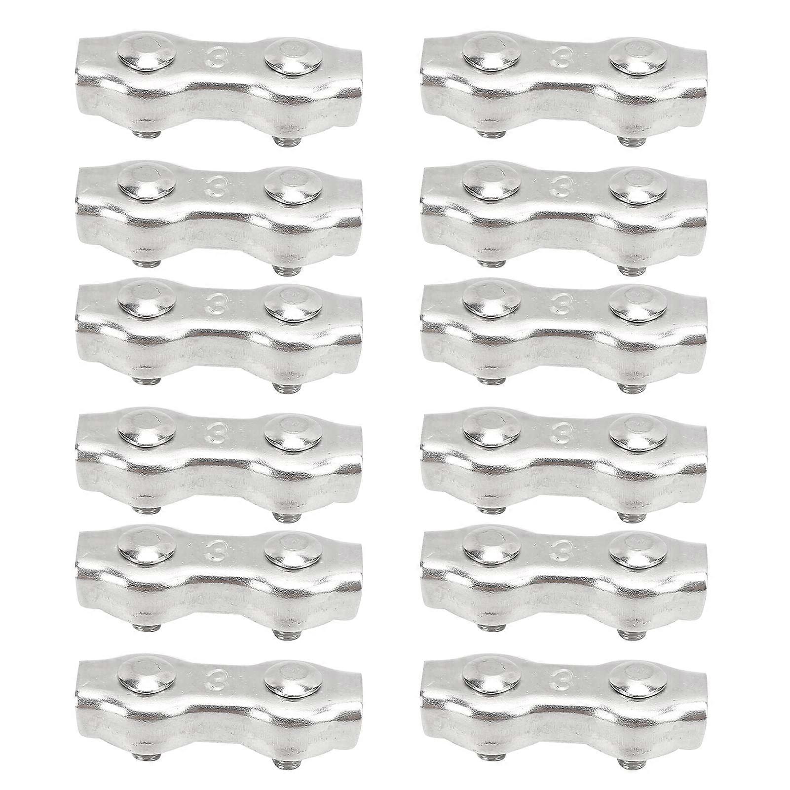 Stainless Steel Wire Rope Clamps 12Pcs M3 Dual Grips Cable Clips Heavy Duty MarineGrade Rustproof Yacht Rigging