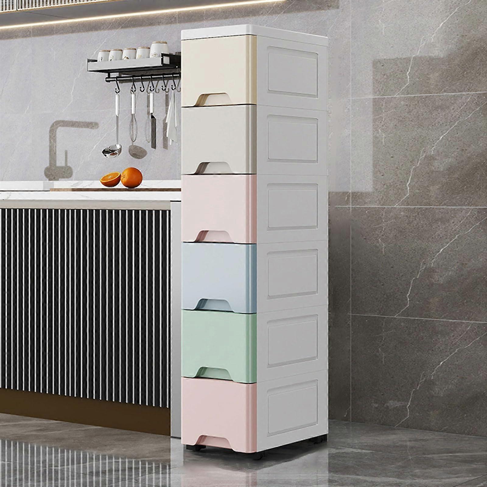 SpaceSaving Bathroom Cabinet Waterproof 6Tier Slim Storage Blue 18 X 34 X 93 CM Easy Install