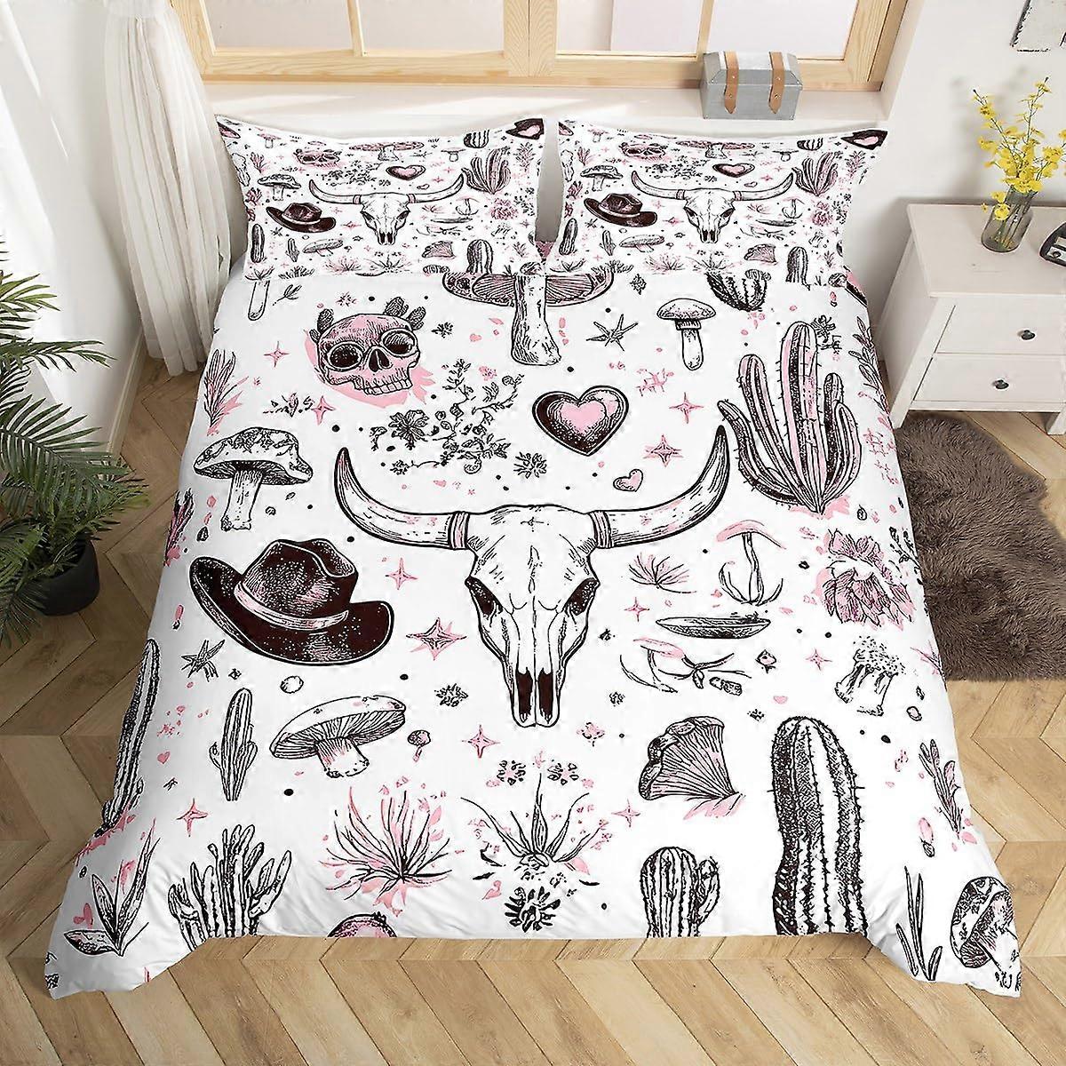 Western Cow Skull Duvet Cover Full Size Kids Bedding Set For Boys Girls Teens Longhorn Skull Breathable Pink Black White