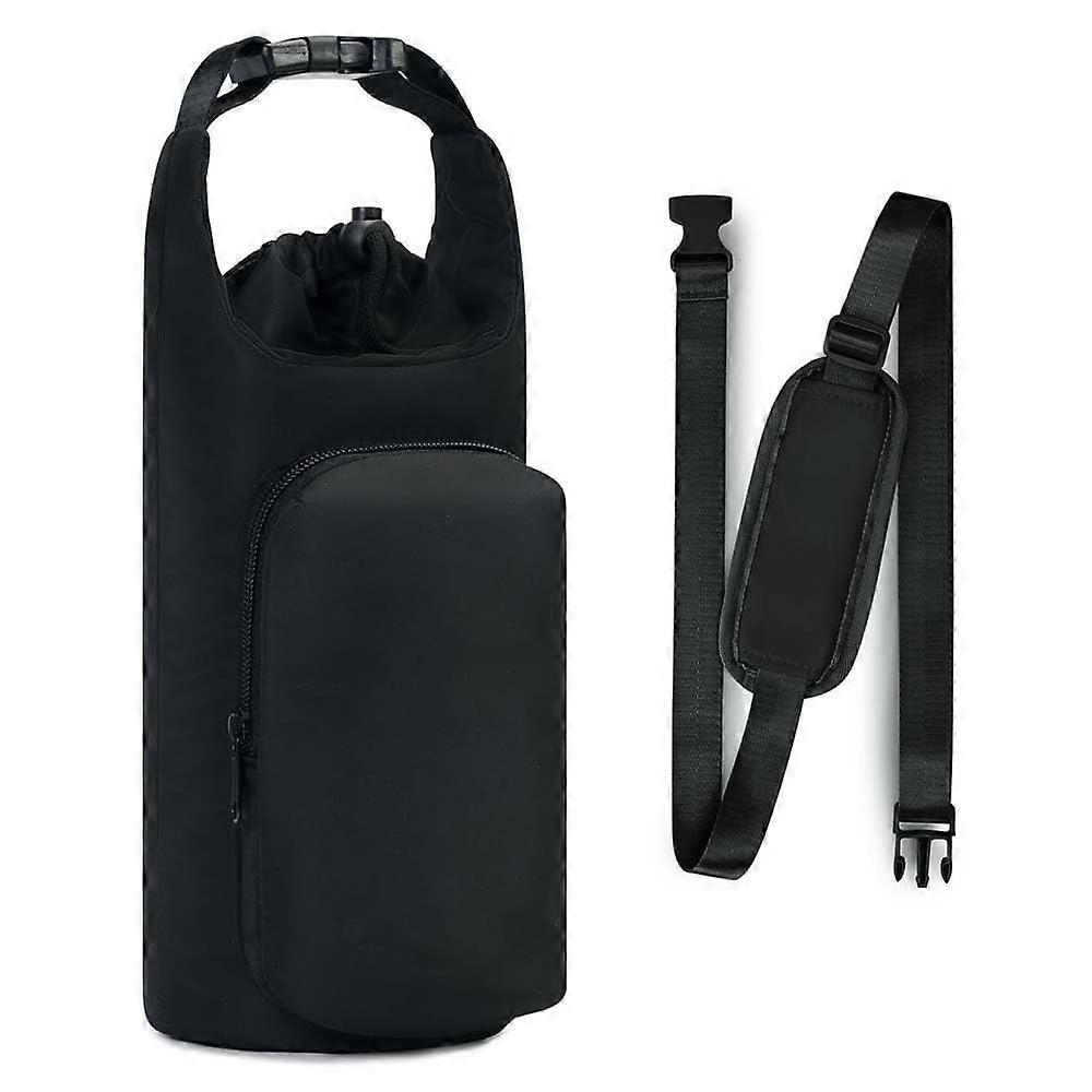 Water Bottle Carrier Bag Insulated Water Bottle Holder With Strap And Phone Pocket For Walking Hiking Camping Black
