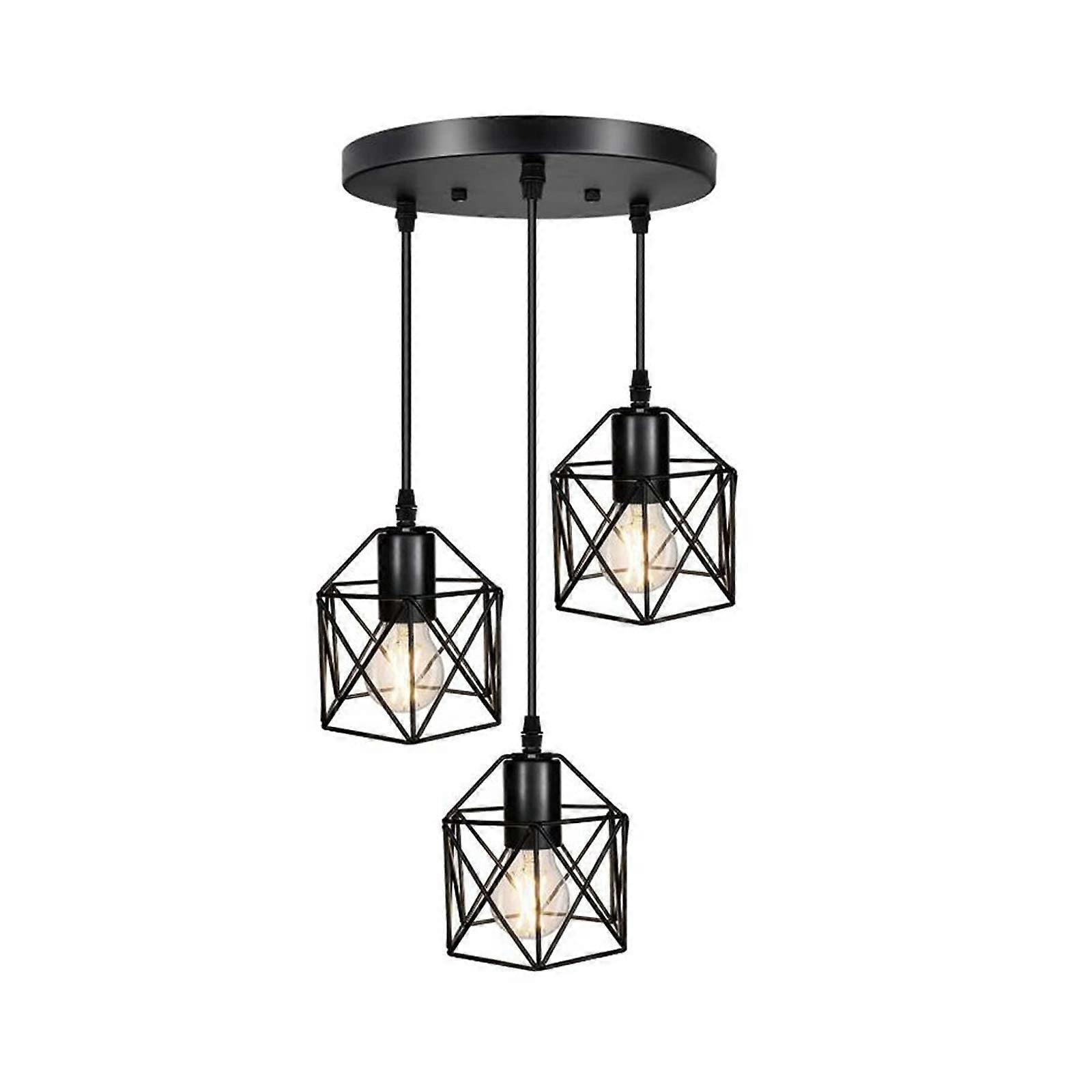 Industrial Retro Cage Pendant Light, 3Light Black Metal Pendant, Vintage Flush Mount, E27 Base, Kitchen Island Cafe