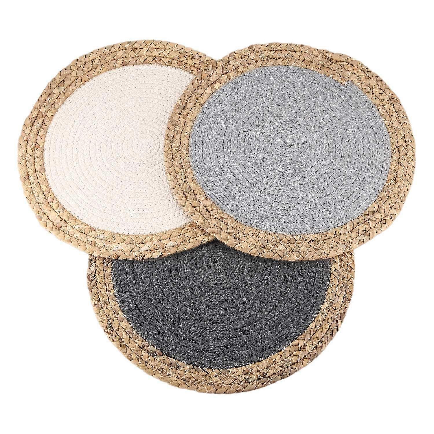 Round Cotton Oven Mitts, 14.2Inch Diameter, Pack Of 3, With Straw Insulating Pads And Braided Mat, Kitchen Set