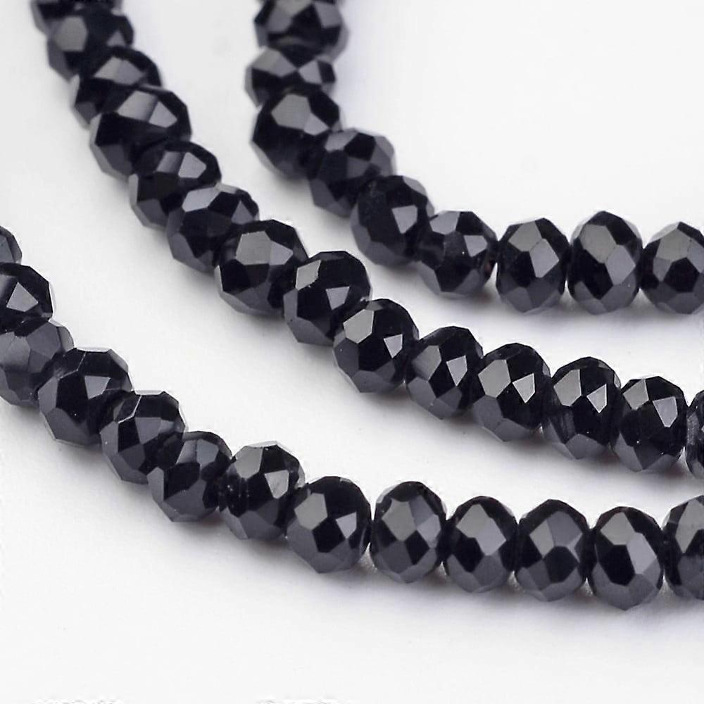 1Strand Electroplate Glass Beads Strands Faceted Rondelle Black 3x2mm Hole: 1mm about 202pcs/strand 17 inch