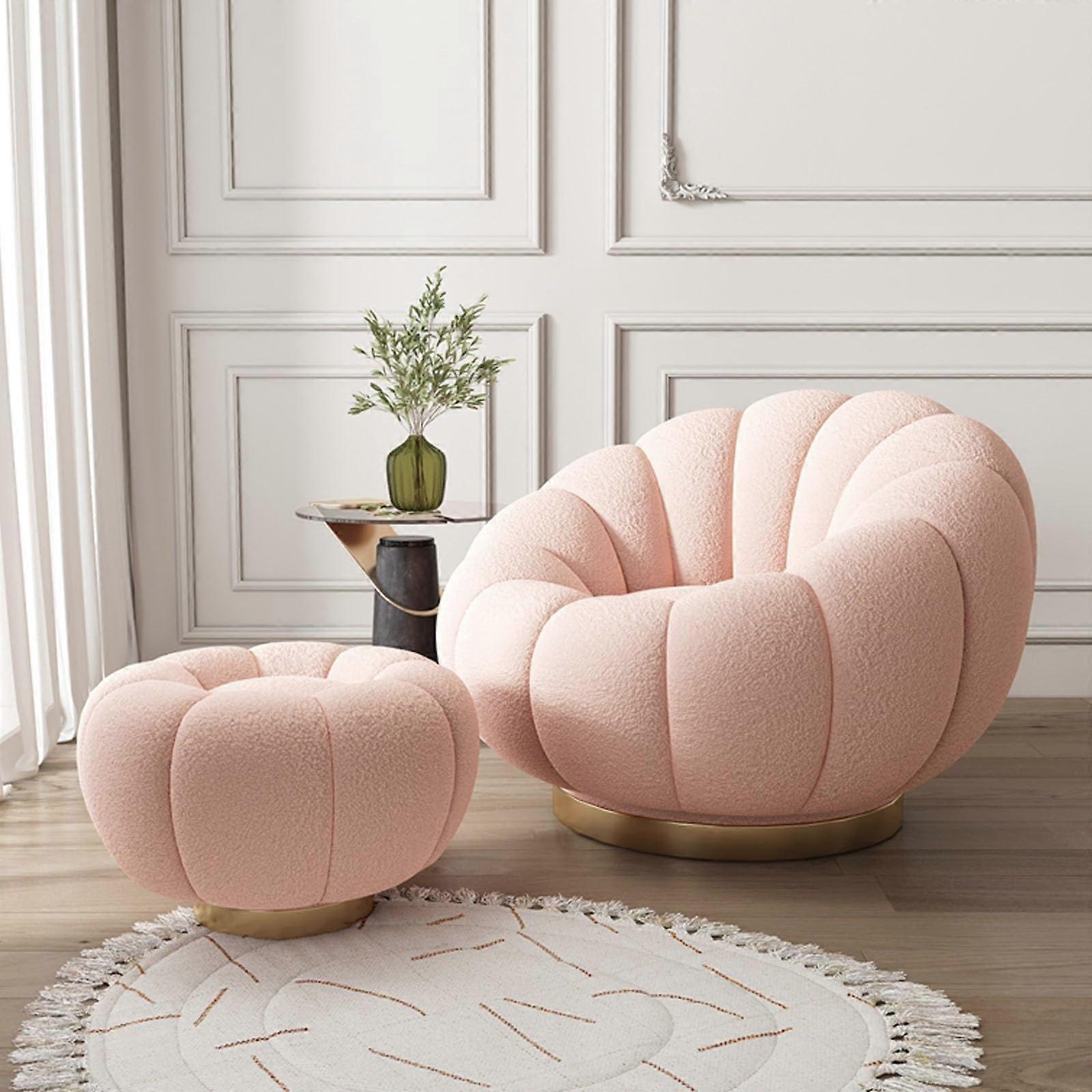 Pink Swivel Accent Chair With Ottoman, 360Degree Swivel, Barrel Club Tub Sofa, One Size, Bedroom & Reading Room