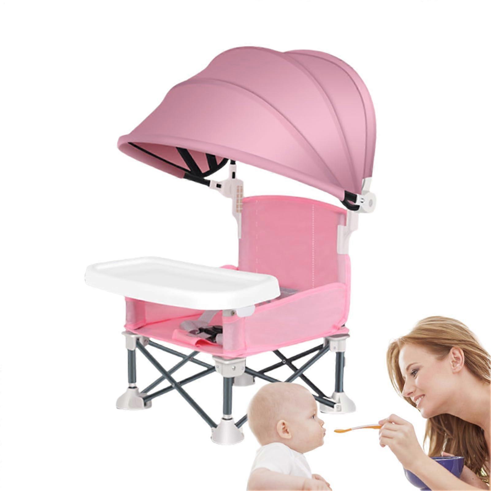 Folding Portable Baby Dining Chair With Removable Tray And Canopy, Pink, Travel Friendly Outdoor Use For Lawn Beach