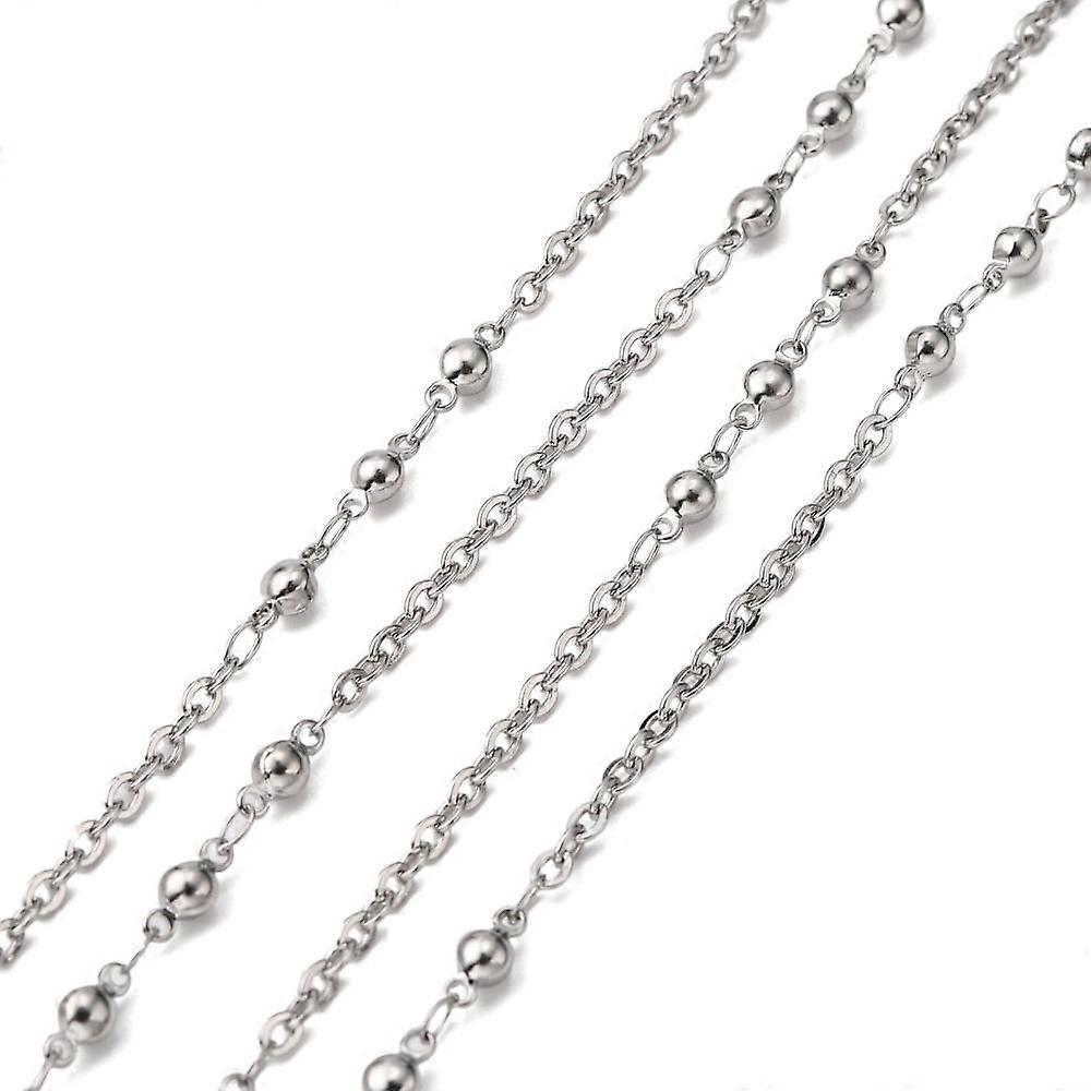 1m 3.28 Feet 304 Stainless Steel Decorative Rolo Chains Belcher Chain Soldered with Round Bead Stainless Steel Color 2.3mm