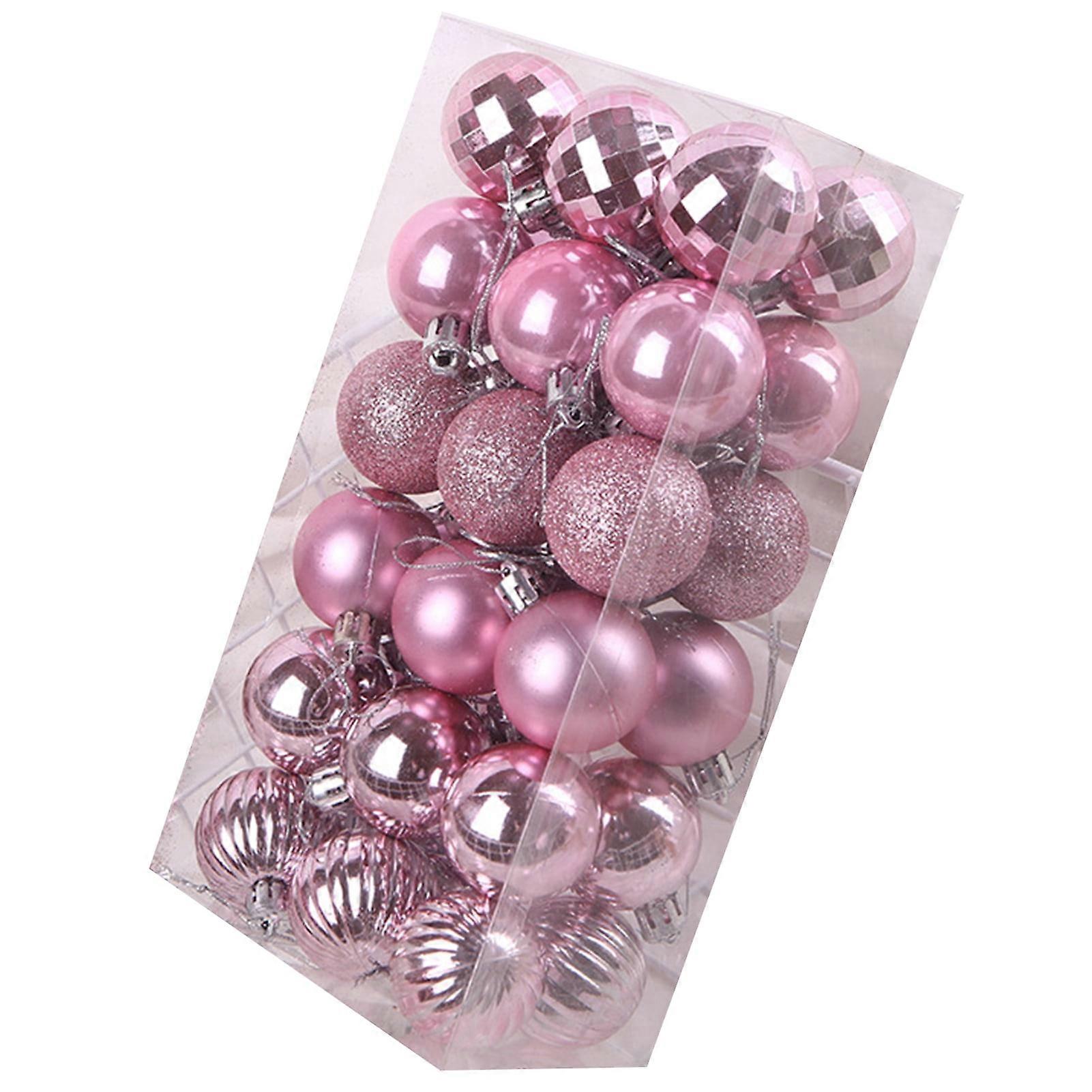 HEVIRGO 36Pcs 4cm Pink Christmas Ornaments - Electroplated, Unbreakable Baubles with Hanging Hole for Tree, Party Decor - Compatible with Xmas