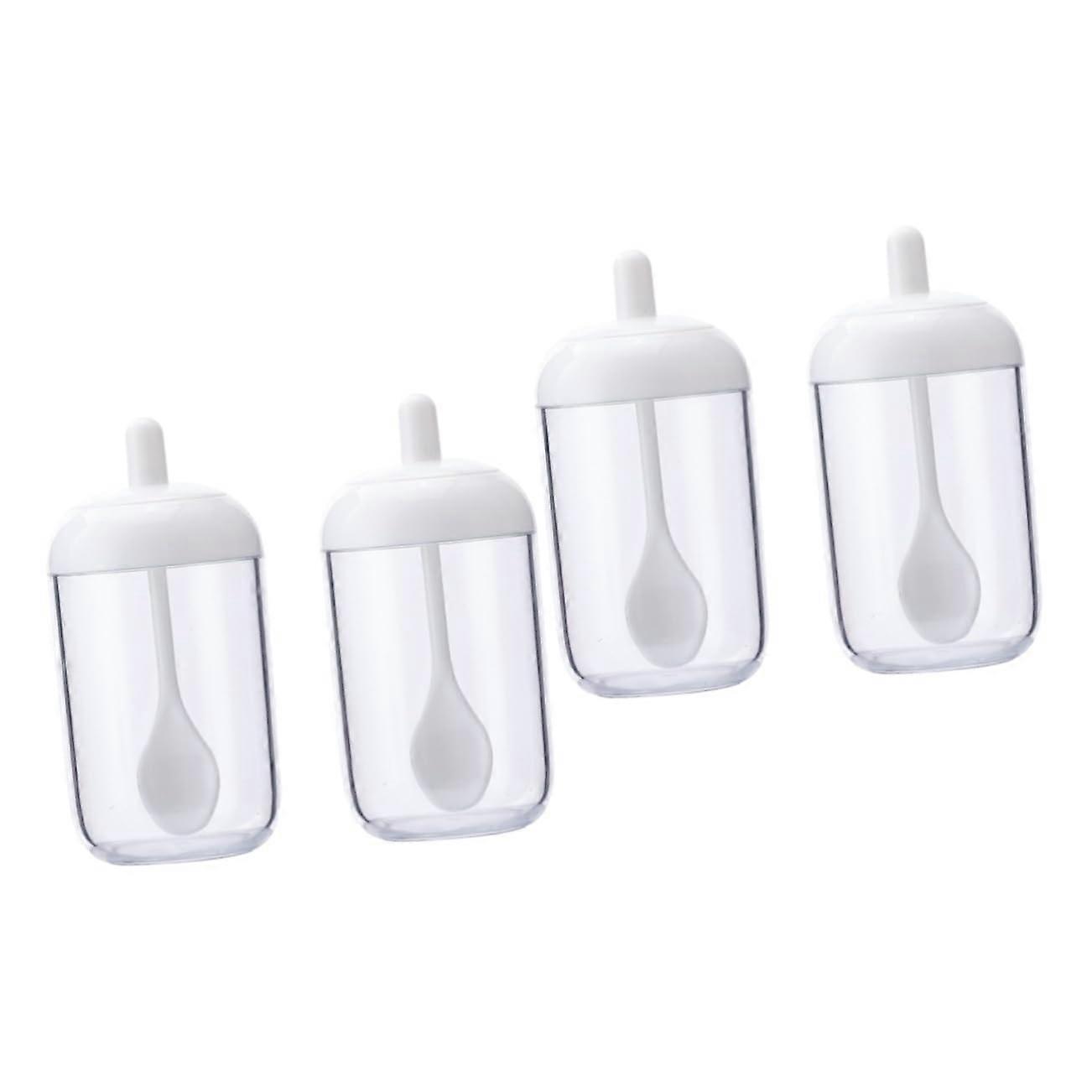 Seasoning Organizer Elegant 4 Pack Spice Jars Lids And Spoon Condiment Container Salt Pepper Storage Jar Plastic Holder