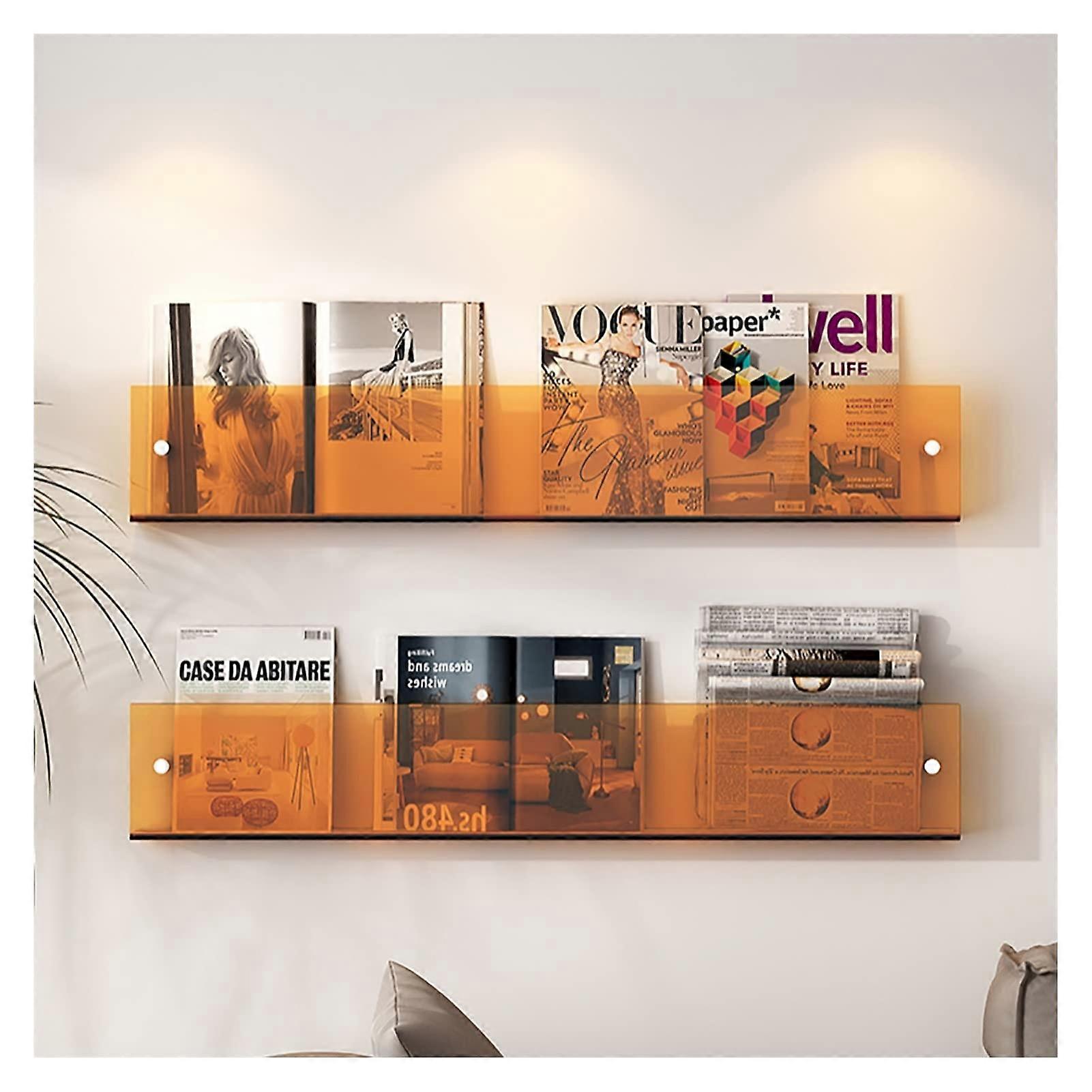 Acrylic Brochure Holder Wall Mounted Floating Bookshelf Magazine Rack Adjustable 2Pack 120cm Orange