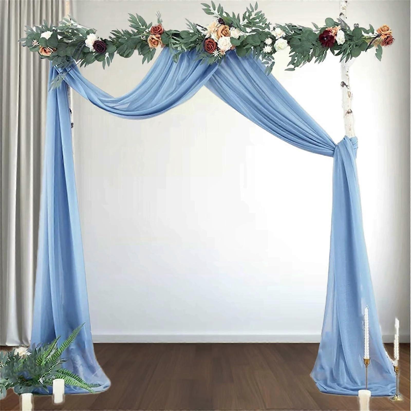 Wedding Arch Draping With 2 Ribbons, Sheer Backdrop Curtain For Indoor Outdoor, Blue 75x600cm, Archway Swag Decoration