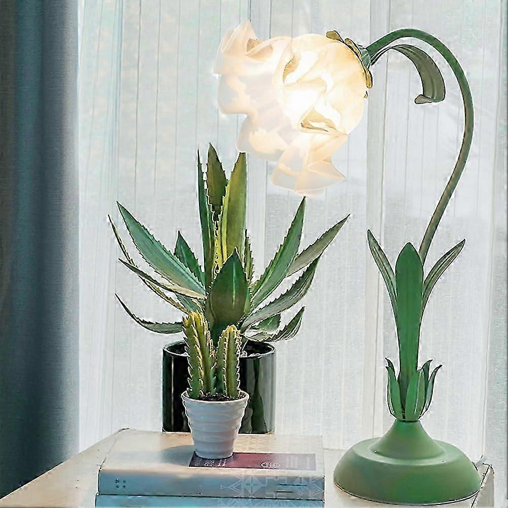 Flower Lamp, 3 Color Changing Night , Vintage Table Lamp With Floral Glass Shade, Metal Leaf, Led Desk Lamp For Living Room, Bedroom, Bedside