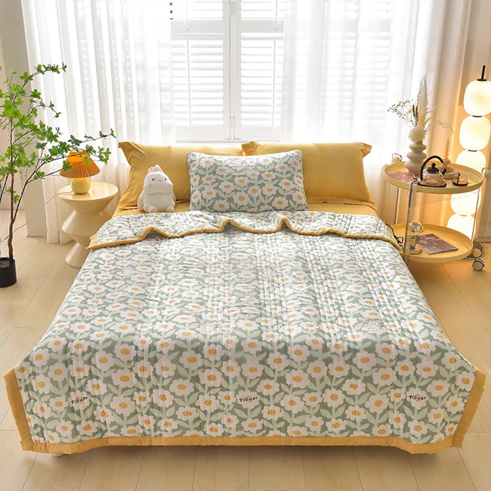 - Summer Quilted Bedspreads in Multiple Sizes: Choose from Single (100x150cm, 150x200cm), Double (180x200cm), and King (200x230cm) to fit your bedroom needs. Available in a variety of attractive colors and quilt patterns, these bedspreads are the perfect finishing touch for your decor. - Lightweight and Breathable Material: Crafted from soft microfiber fabric, our bedspreads are lightweight yet cozy, making them suitable for year-round use. Enjoy a comfortable and warm sleeping environment that promotes better rest throughout all seasons. (Note: Pillowcases are not included.) - Durable and Hypo-Allergenic: The microfiber cover material is designed to be kind to those with dust mite allergies, creating a healthier sleeping space. Strong stitching enhances durability, ensuring your bedspread lasts while maintaining its quality. Please be aware that actual colors may vary slightly due to monitor settings. - Easy Care Instructions: Maintain your bedspread effortlessly. Machine wash on a gentle cycle with cold water. Avoid bleach and chemical treatments, and do not dry clean. For drying, air it in the sun or tumble dry on low. - Practical Use Scenarios: - Perfect for adding a layer of warmth during chilly nights while remaining lightweight for summer use. - Ideal for guest rooms to create a welcoming and stylish atmosphere for visitors. - A great choice for seasonal decor changes, allowing you to easily switch up your bedroom's look.