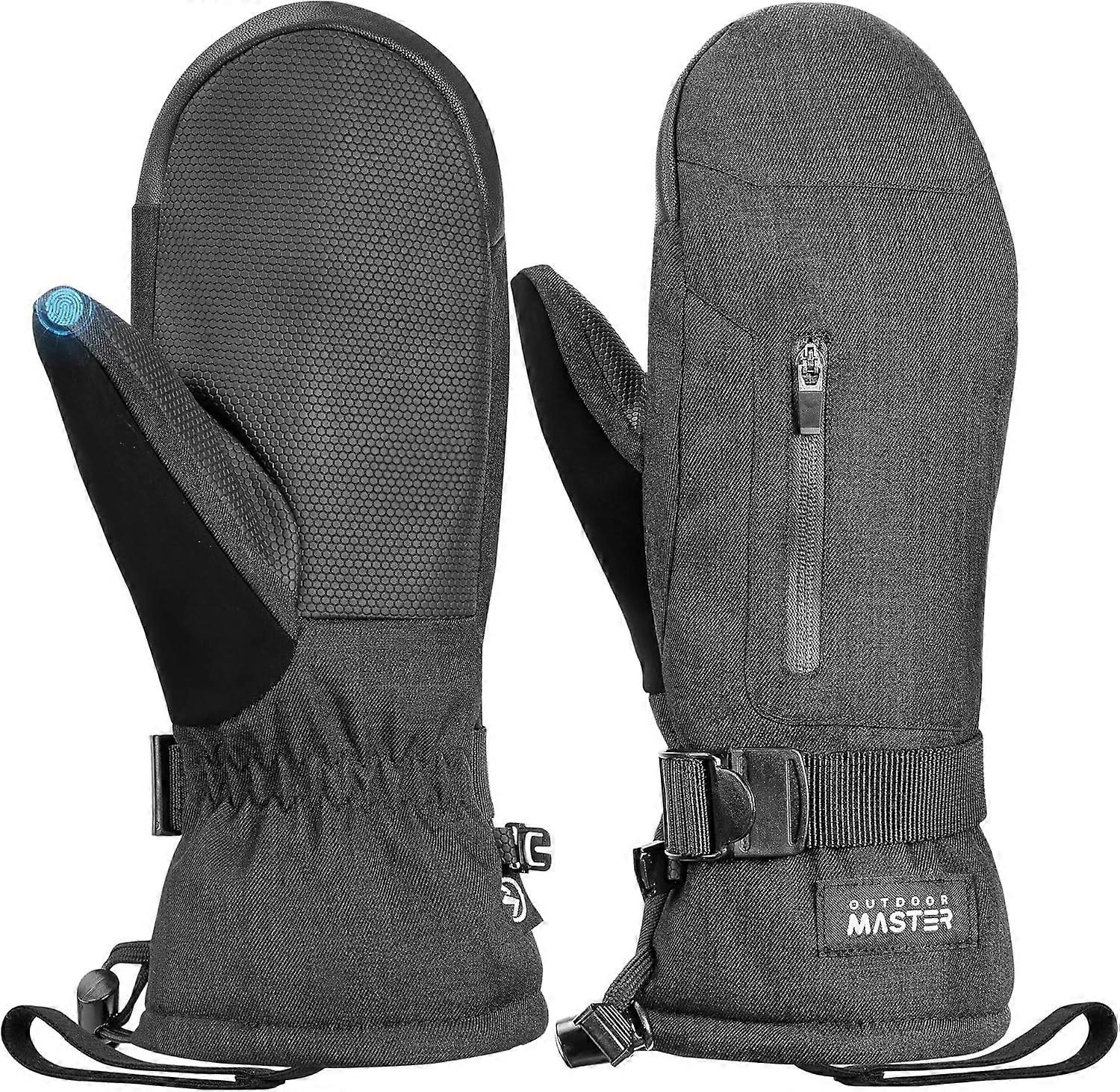 Superior Waterproof and Windproof Performance: A waterproof and windproof exterior and an internal waterproof TPU membrane provide double-layer waterproof protection. Adjustable elastic cuffs and wrist straps effectively prevent cold air from entering. Thumb Touchscreen: Soft and flexible leather material equips the ski gloves with a thumb touchscreen. Even in cold winter weather, you can easily use electronic devices without removing the gloves. Double Pocket Anti-Loss Design: Dual zippered pockets on the back of the hand offer a smooth zipper design for comfortable wear, perfect for storing cards, small hand warmers, or keys. A concealed wrist strap keeps the snow gloves securely on your wrist, preventing loss even when removed. Excellent warmth: With 140 grams of built-in insulation, these winter mittens keep your hands warm, breathable, and comfortable, perfect for skiing, snowboarding, snowmobiling, hiking, cycling, and other winter outdoor activities. The mittens are designed to be warmer than fingerless gloves because the fingers can share heat.