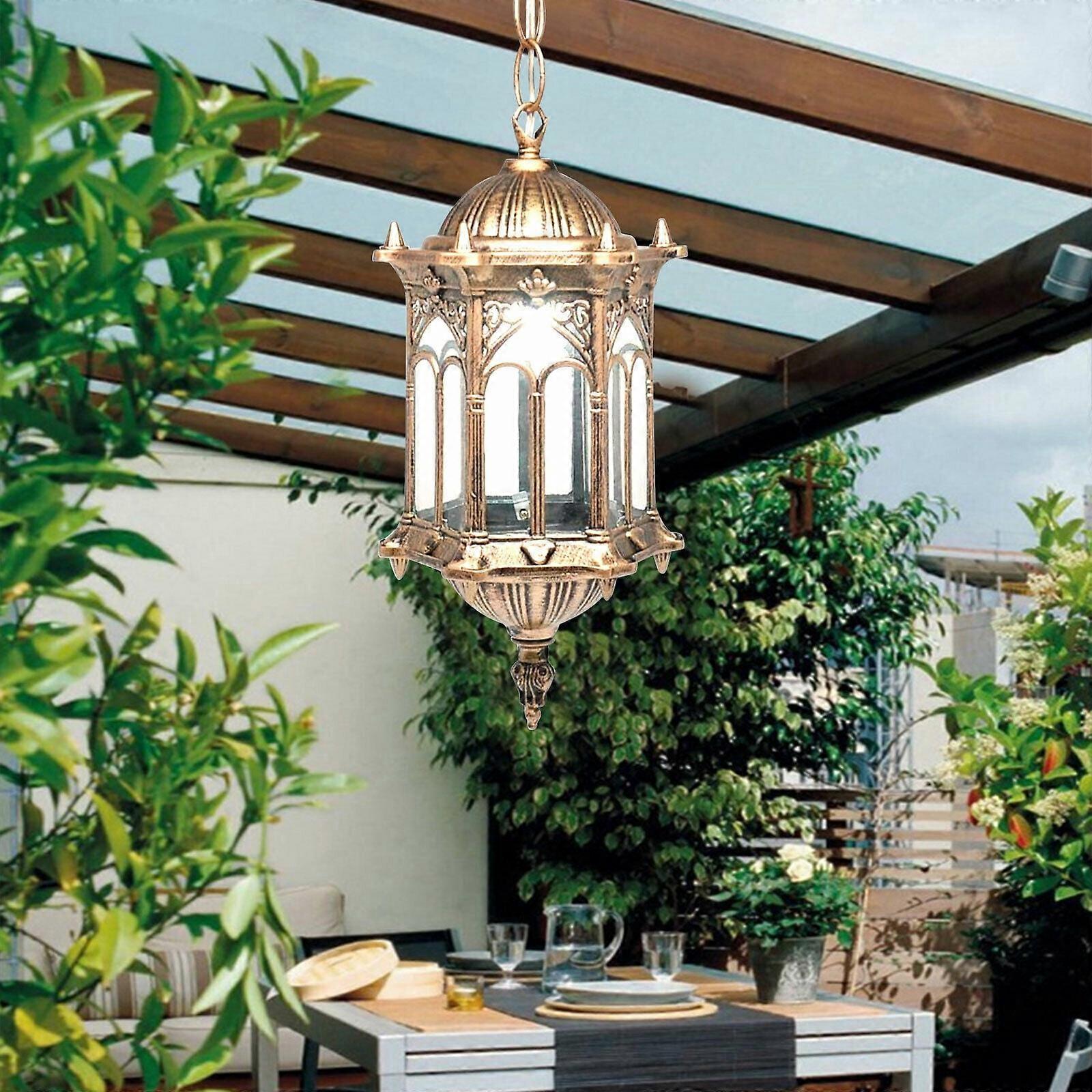 FETCOI, Outdoor Hanging Light Waterproof Bronze Exterior Wall Lantern Pendant Lamp Decor