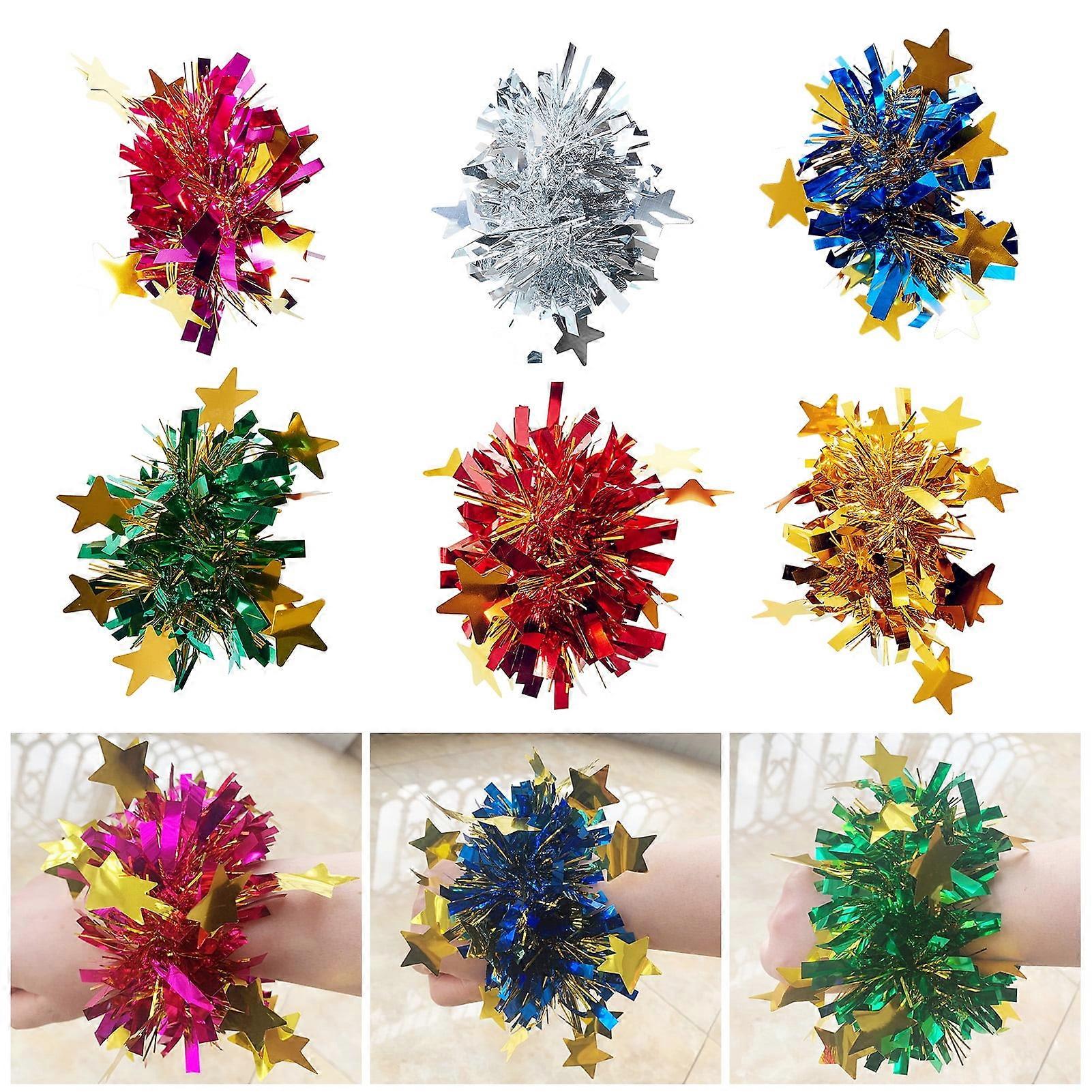 6Pcs Metallic Pom Poms Hair Ropes & Wristbands with Star Decor, Golden, for Cheerleading, Stage, Volleyball, Celebration - SUSUchens