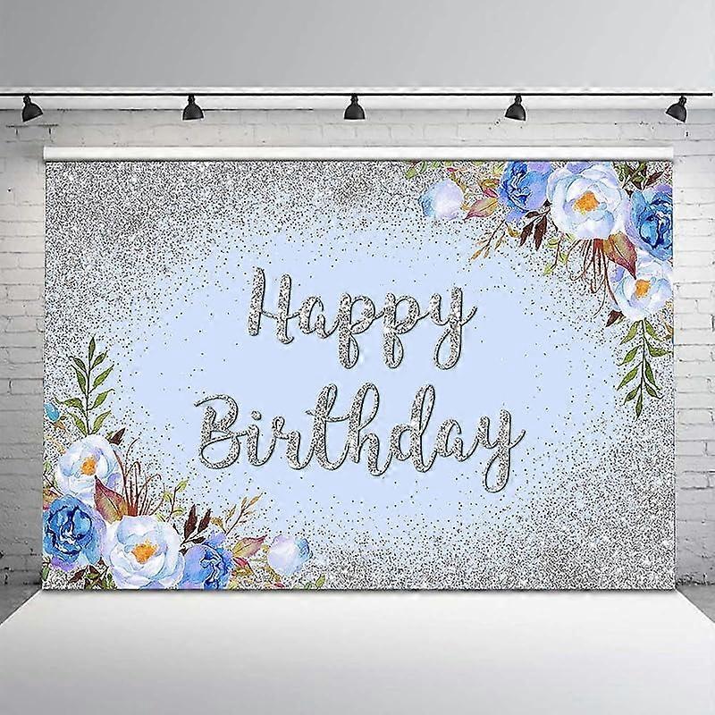 Purple & Silver Floral Birthday Backdrop, 7x5 ft, Purple Dots Bokeh Background for 30th-70th Party, Women Men (Compatible with Purple)