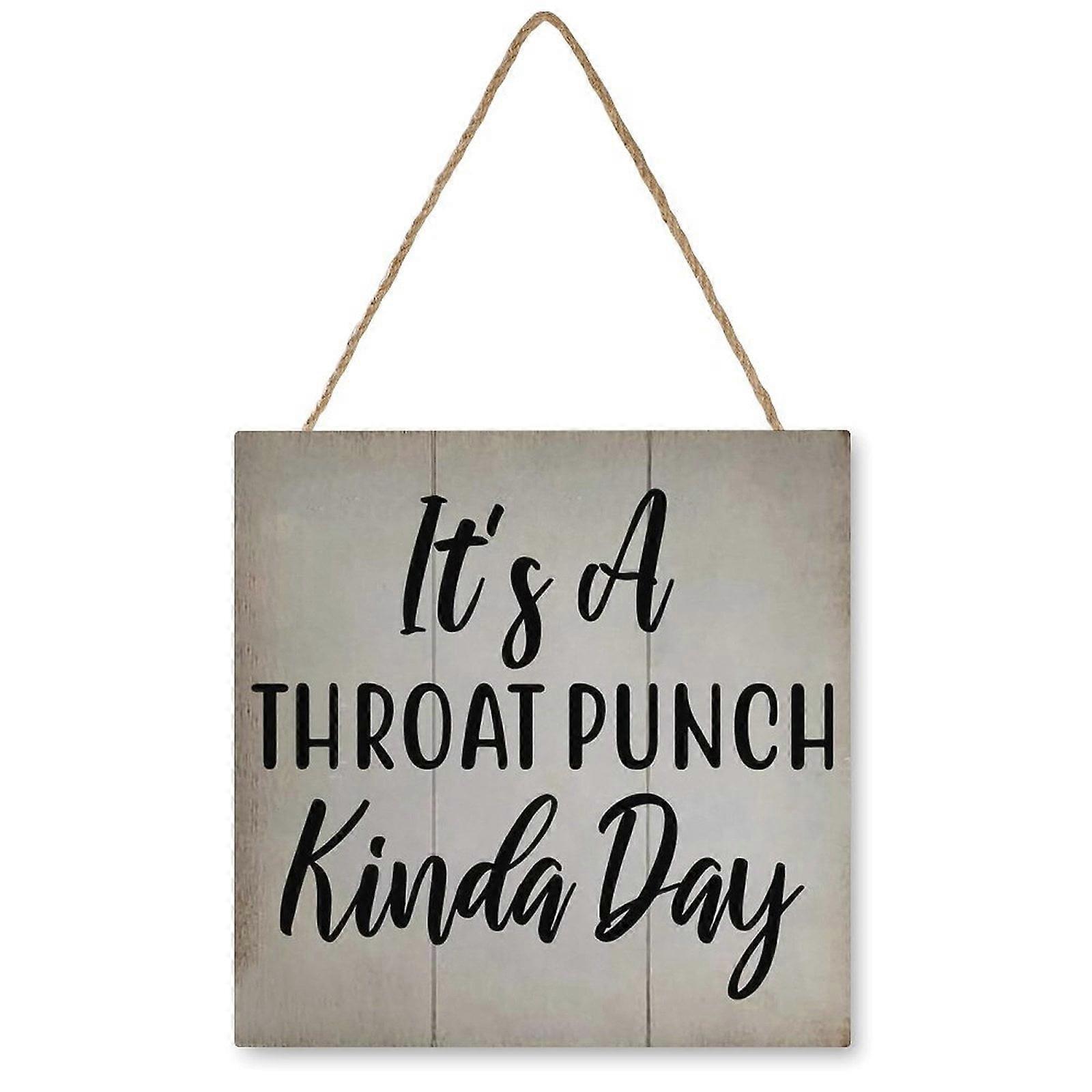 Funny Wooden Sign - It's A Throat Punch Kinda Day, 12x12 inch Decorative Plaque, Farmhouse Hanging Sign for Home Decor