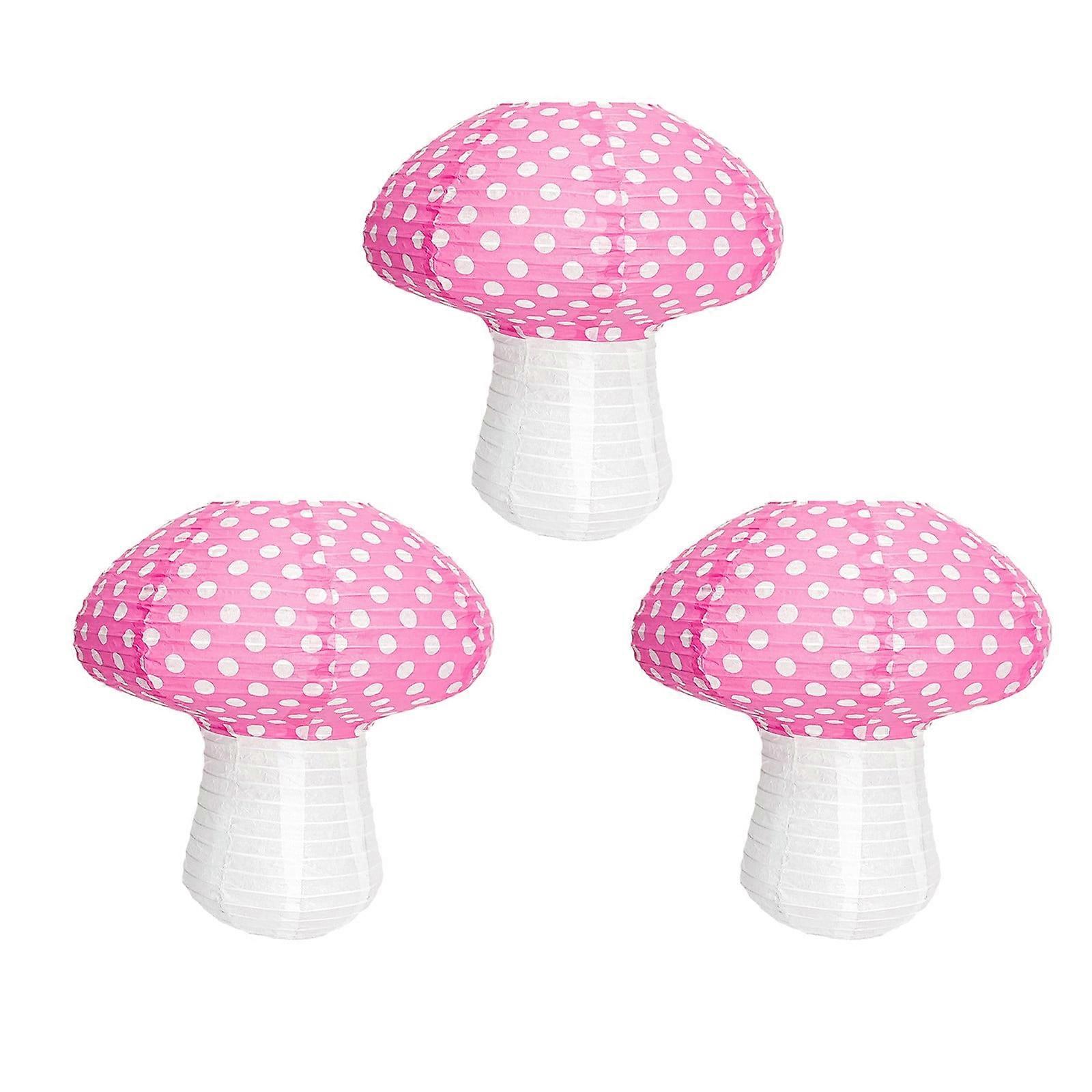 Pink Mushroom Shaped Paper Lantern 3X14 Inch, 3D Hangable Decoration for Party Event, Compatible with Mushroom Theme