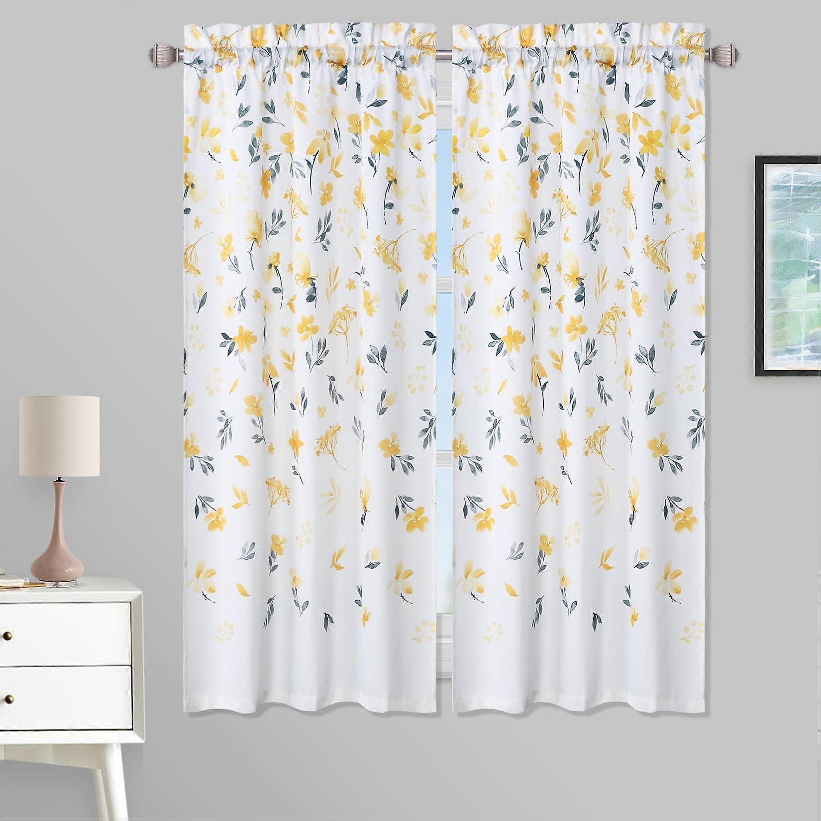 Haperlare Cafe Curtains 26x45 in, Yellow Watercolor Floral, Set of 2, Rod Pocket, Machine Washable, Compatible with Kitchen Window Decor