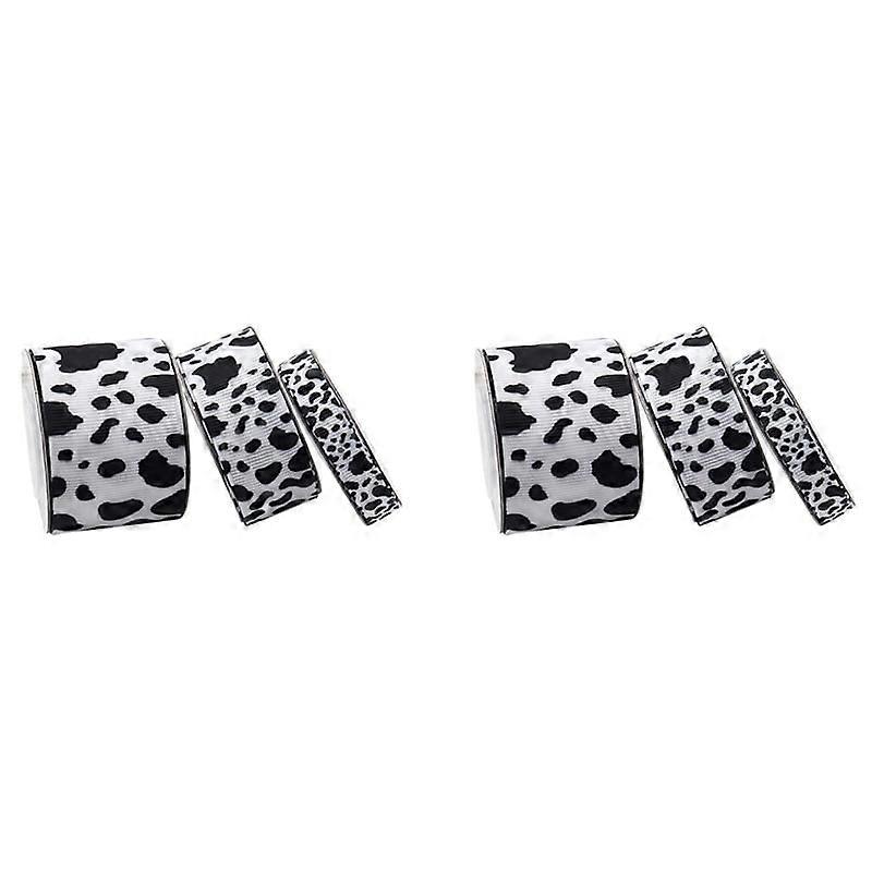 6Pcs White Black Cow Print Wired Edge Ribbon Craft Ribbons Gift Wrapping Ribbon Animal Print Ribbon for DIY Crafts
