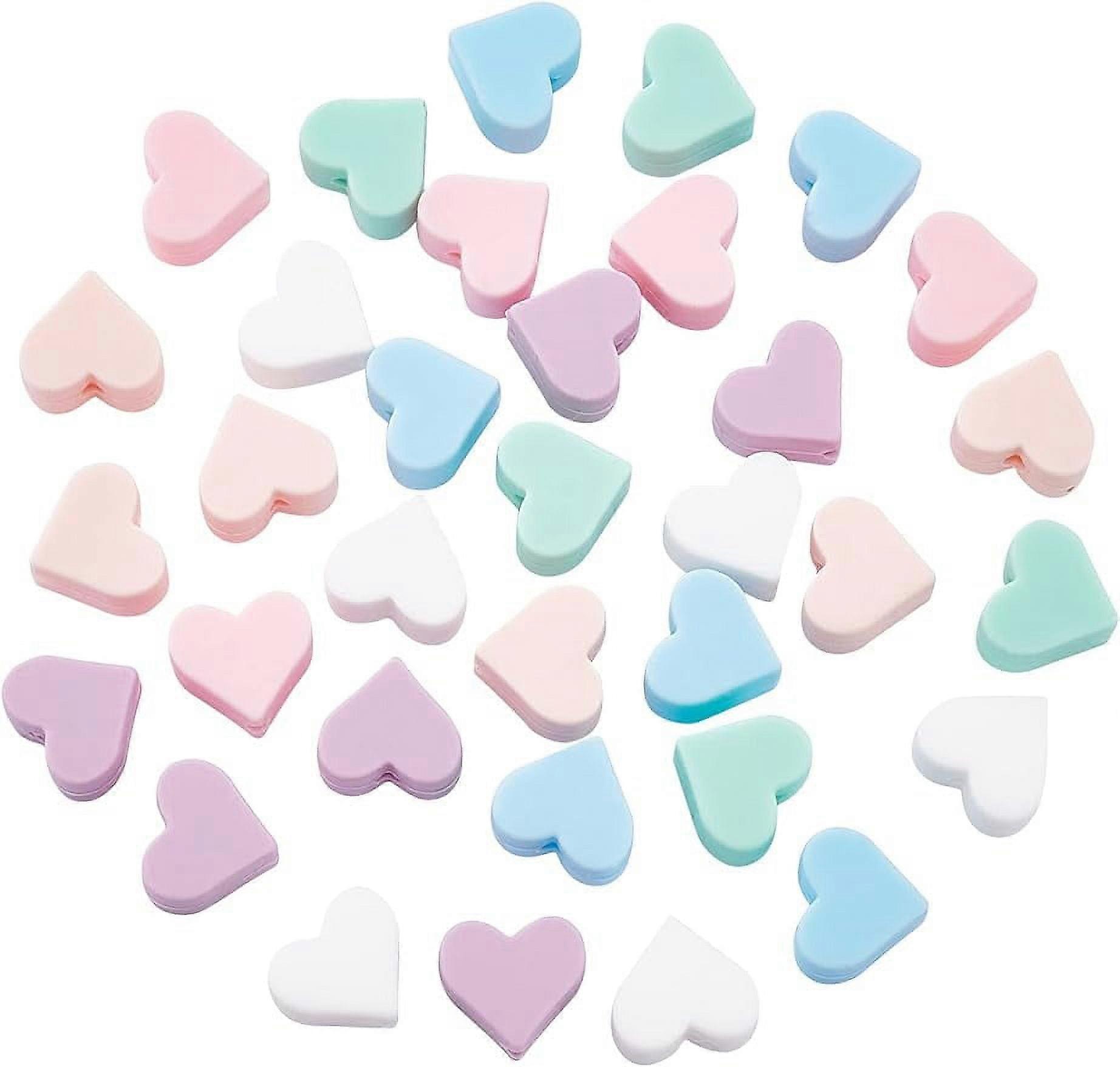 36Pcs Heart Silicone Beads Soft Bulk Beads Loose Spacer Beads for Bracelet Necklace Jewelry Making