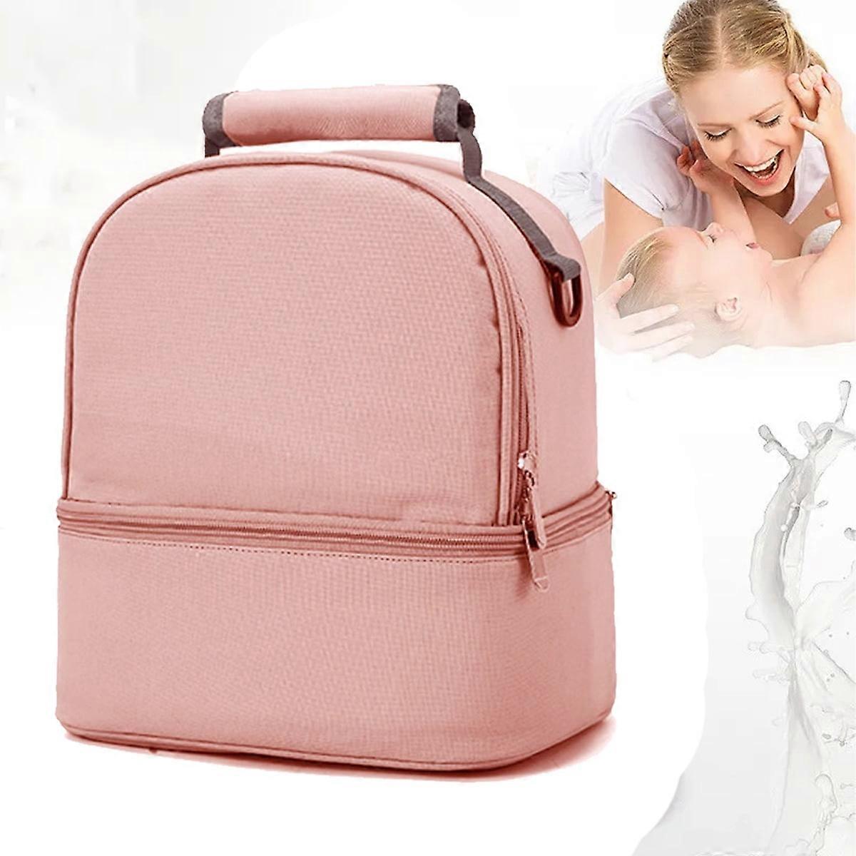 Fashion Breastmilk Bag Insulation Double Layer Bag Solid Color Large Capacity Travel Picnic Portable,Pink