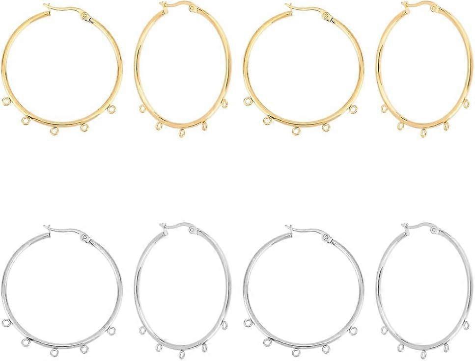 8 Pcs 2 Colors 304 Stainless Steel Huggie Hoop Earrings Findings, 12 Gauge Large Hoops with 5 Loops for DIY Jewelry Making, Hypoallergenic