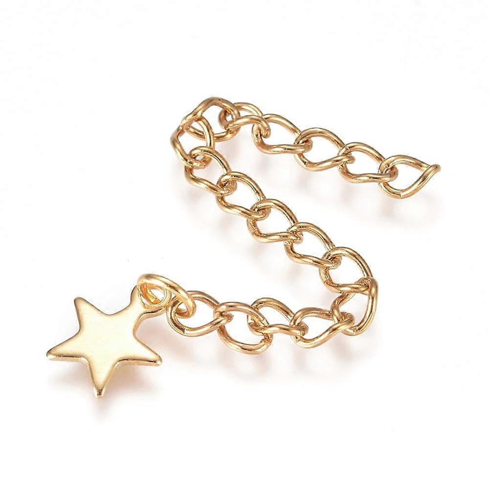 5pc 304 Stainless Steel Chain Extender Curb Chain with Charms Star 60.5mm link: 4x3x0.5mm charm: 8.5x7x0.6mm.