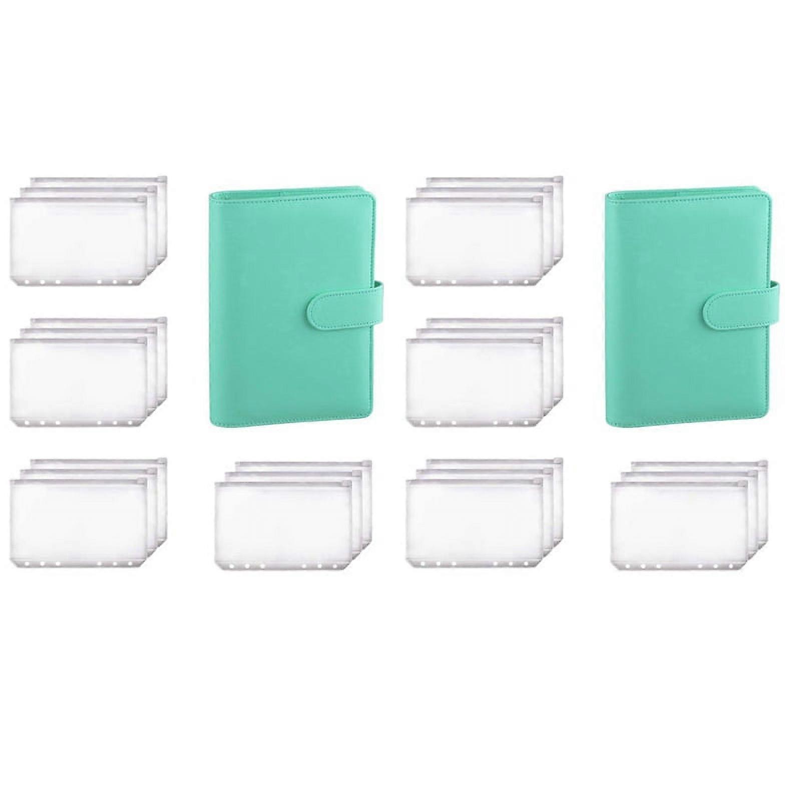 2X A6 Binder Planner Green Notebook Binder and 24 Pieces 6 Hole Binder Zipper Folder,Binder Pockets Cash Envelope Wallet