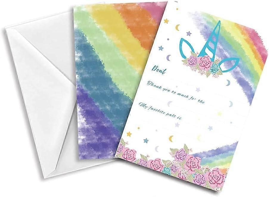 Rainbow Unicorn Invitations with Envelopes - 30 Sheet Fill-in Kit for Birthday, Baby Shower, Bridal Shower - 15x10 cm
