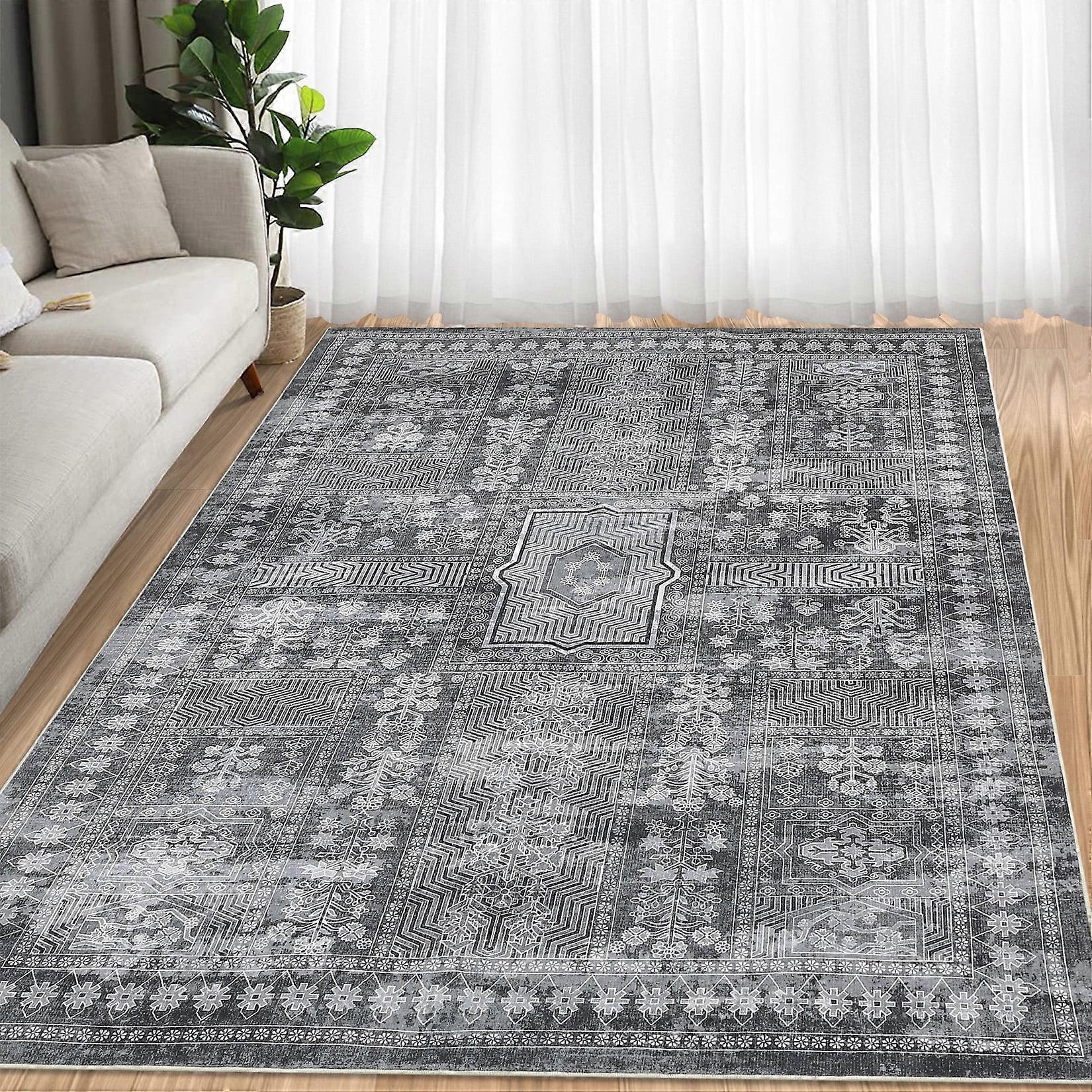 Haperlare Machine Washable Area Rugs Oriental Vintage Stain-Resistant Rugs for Kitchen Dining Room Home Office Rug,Grey,5'x7'