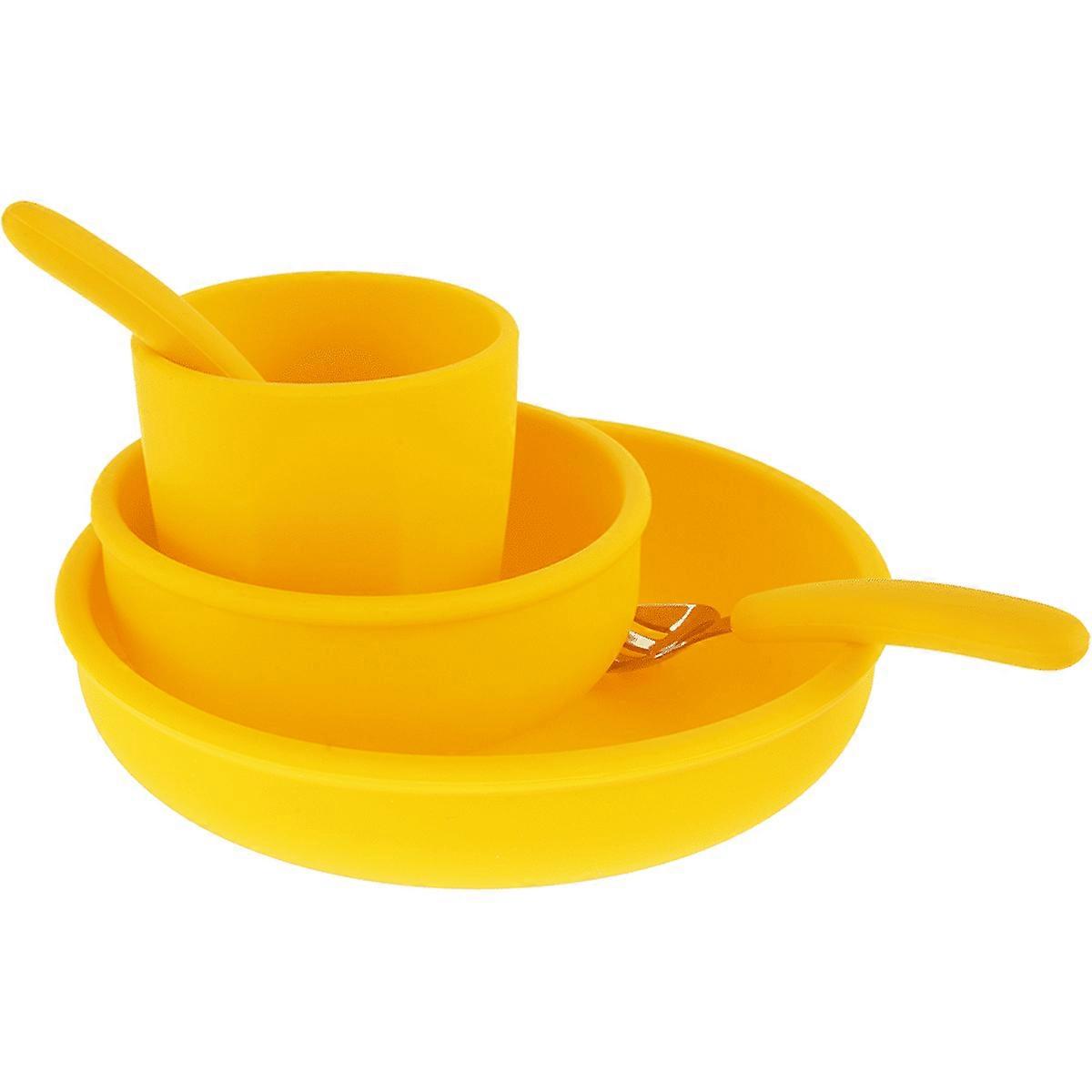 5pcs Kids Dinnerware Set BPA Free, Silicone Tableware for Toddlers with Plate, Bowl, Cup, Spork & Spoon - Orange, compatible with Wekvgz