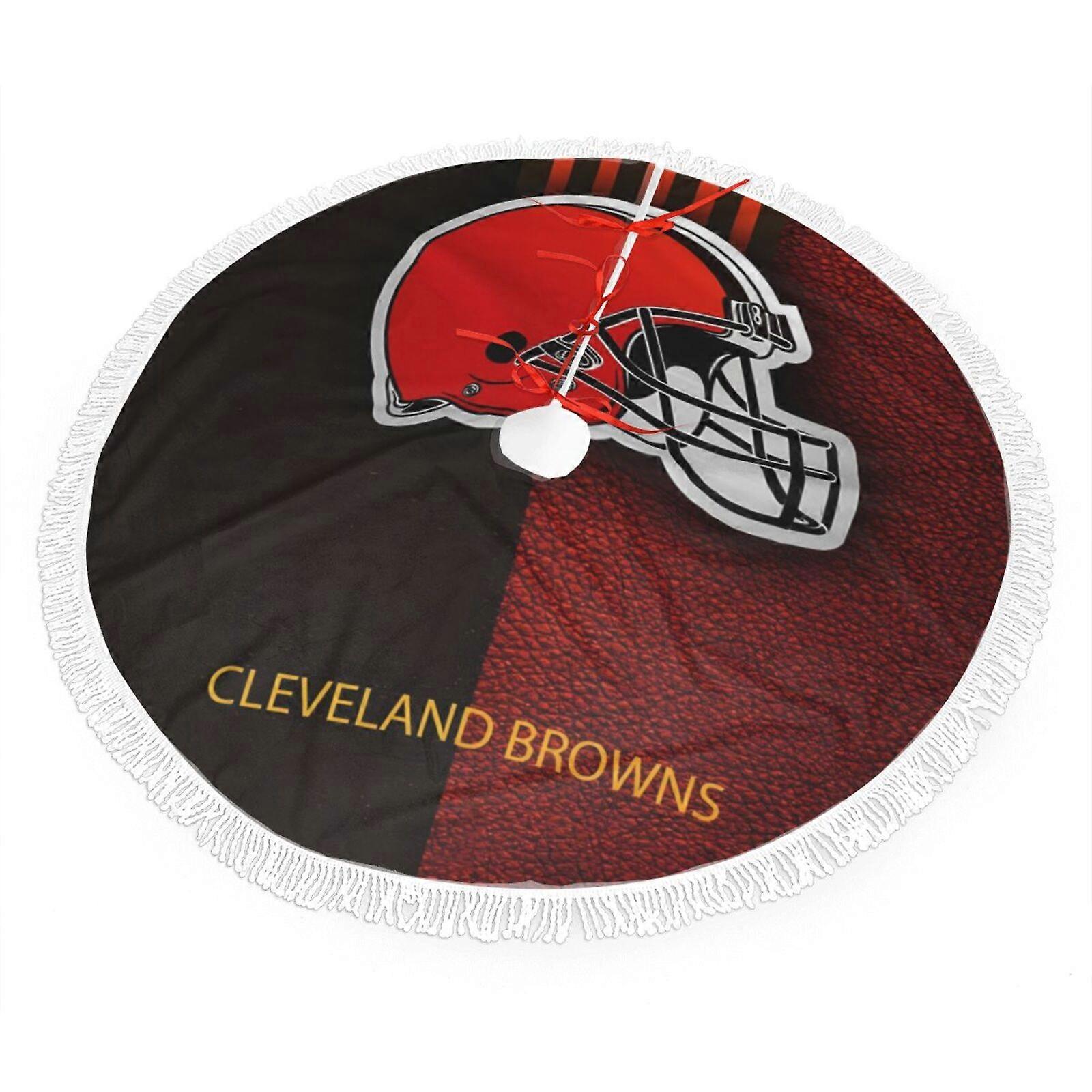 Browns Christmas Fringe Edge Plush Tree Skirt, 30" 36" 48", Football Team Color, Bright & Easy to Install, Perfect Gift for Fans